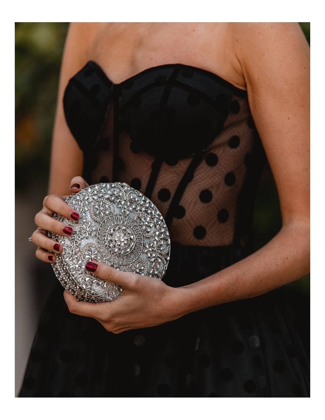 J'adore cette pochette de soirée pour les événements du matin, de l'après-midi et du soir. Vous pouvez la porter à d'innombrables occasions et toujours être l'invitée parfaite. Ce Sac sera transmis de génération en génération et sera une pièce que tout le monde voudra pour leurs événements