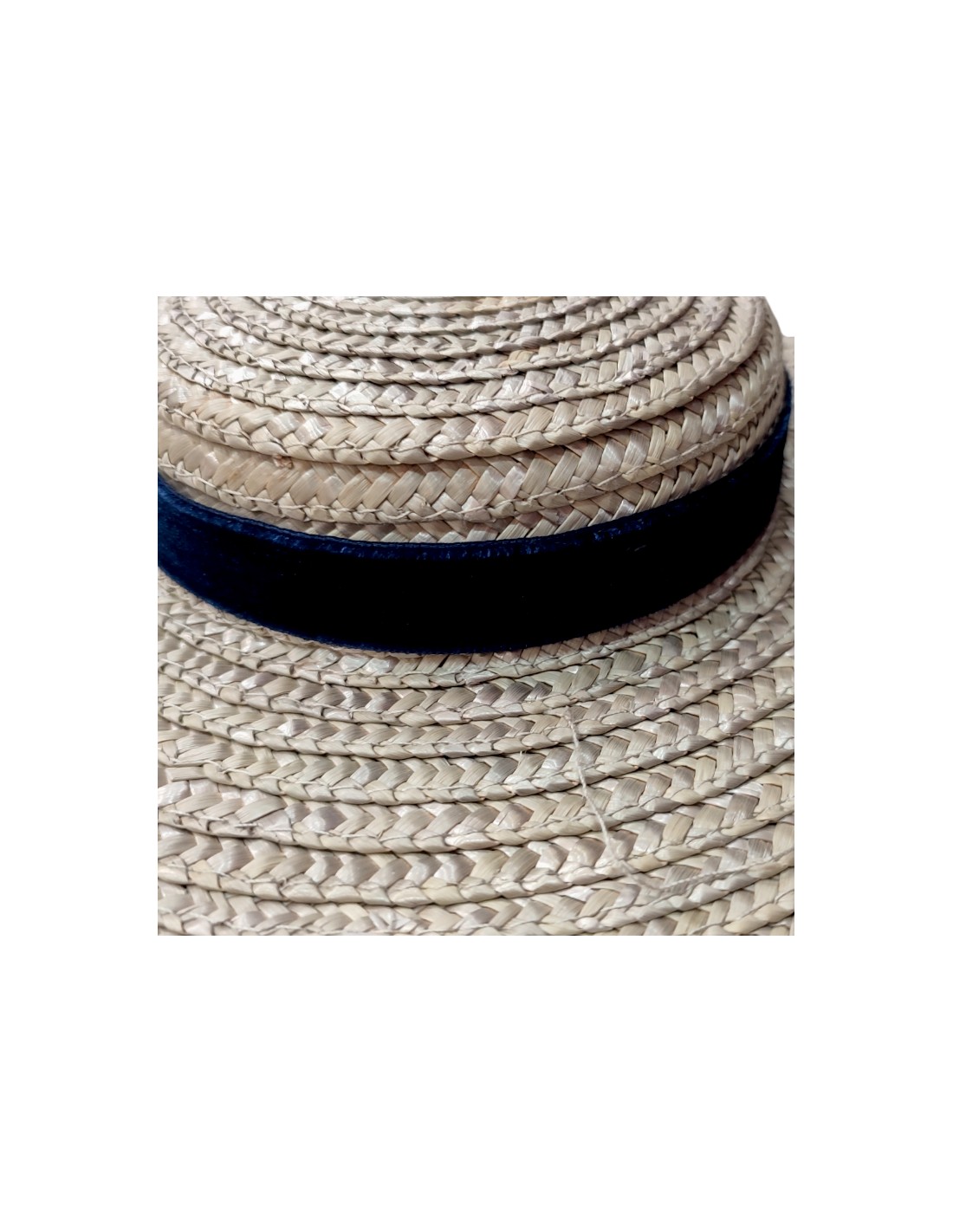 Pamela en paille gris perle avec ruban de velours bleu marine pour les invités d'un mariage en journée.