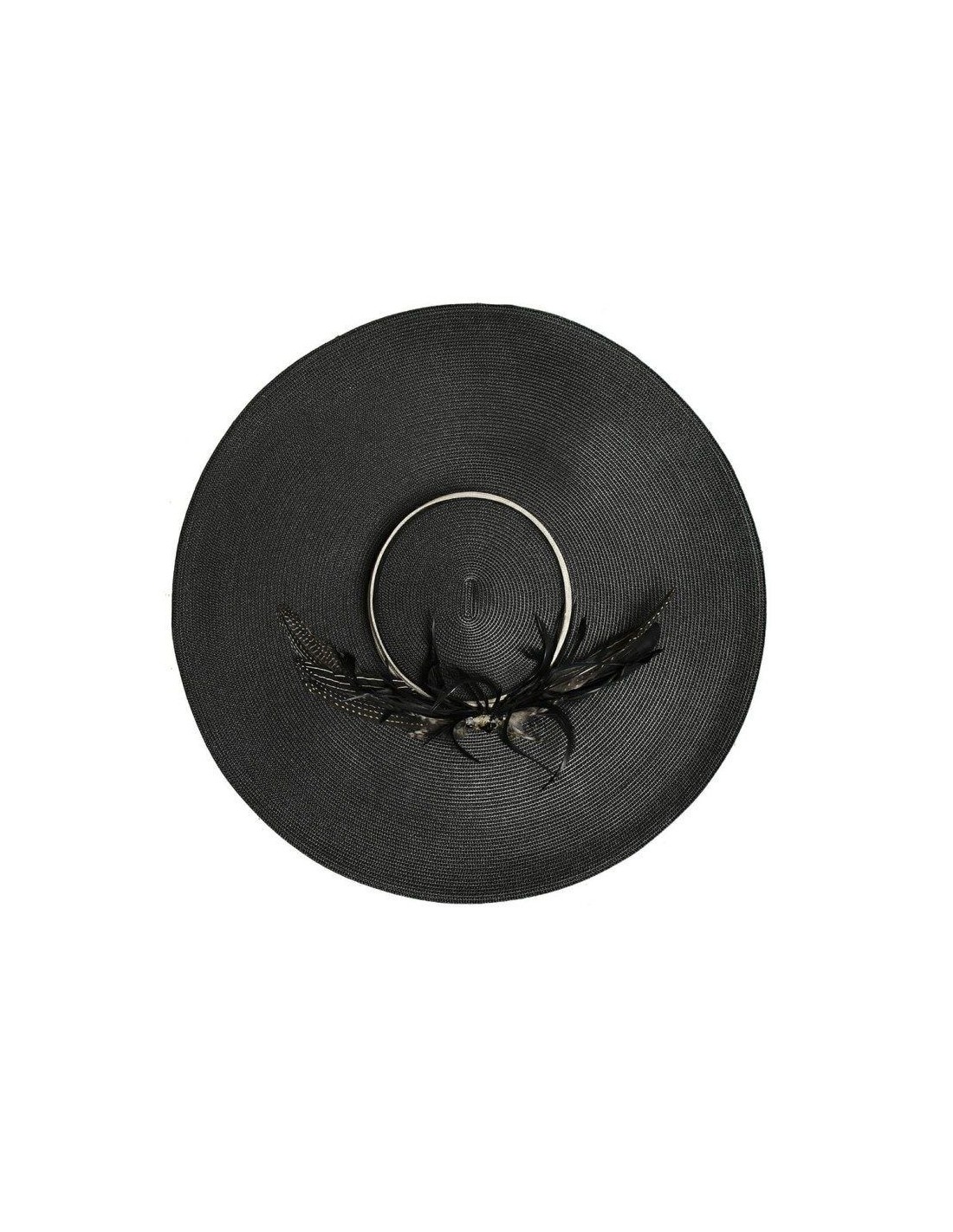 Ce maxi chapeau d'invité noir, parfait pour les mariages, les événements et les occasions spéciales, confère une allure sophistiquée et élégante. Son design unique se caractérise par un nœud en sinamay pour le volume et la distinction, accompagné d'une plume de faisan pour un look raffiné et glamour.
