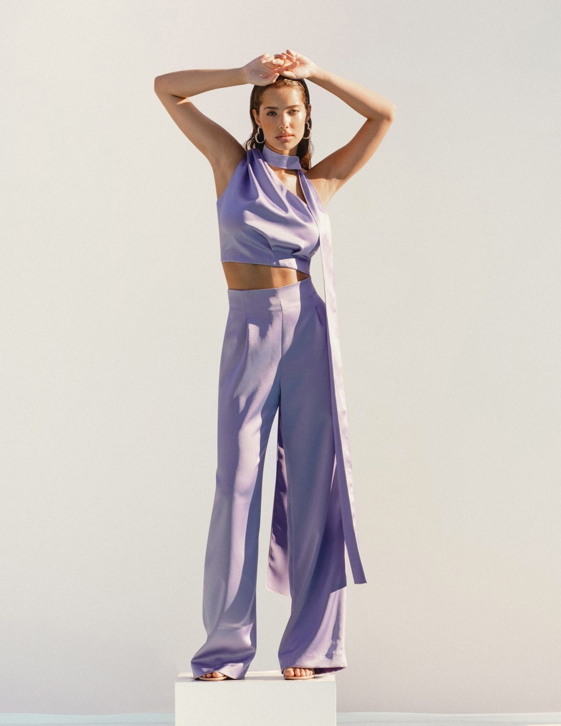 Un vêtement que vous aurez envie de porter avec toutes sortes de tops pour créer de multiples looks. Sa couleur lilas est idéale pour cette saison et apportera une touche spéciale à votre tenue. Associez-le à son Top assorti pour former une tenue idéale qui fera de vous une invitée parfaite. Vous pouvez le porter pour les mariages, les baptêmes, les communions ou les fêtes. Il s'agit d'un modèle fluide et confortable, satiné et à taille haute. Il présente une coupe droite avec des pinces sur le devant.