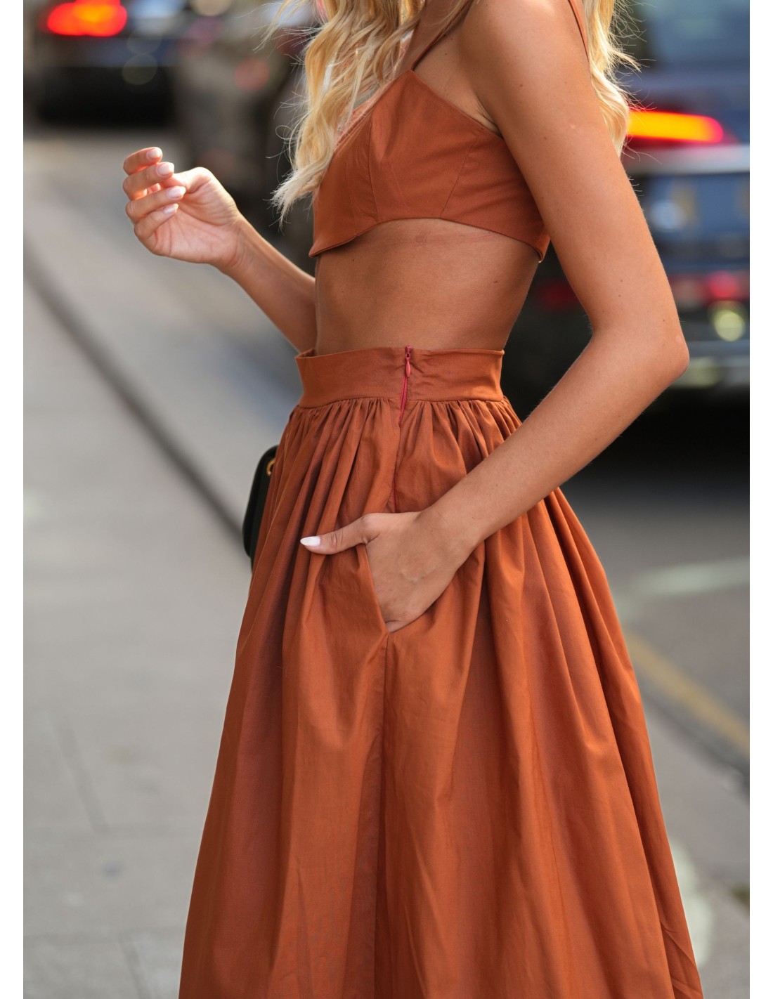 Jupe longue en terre cuite avec poches et fermeture éclair invisible