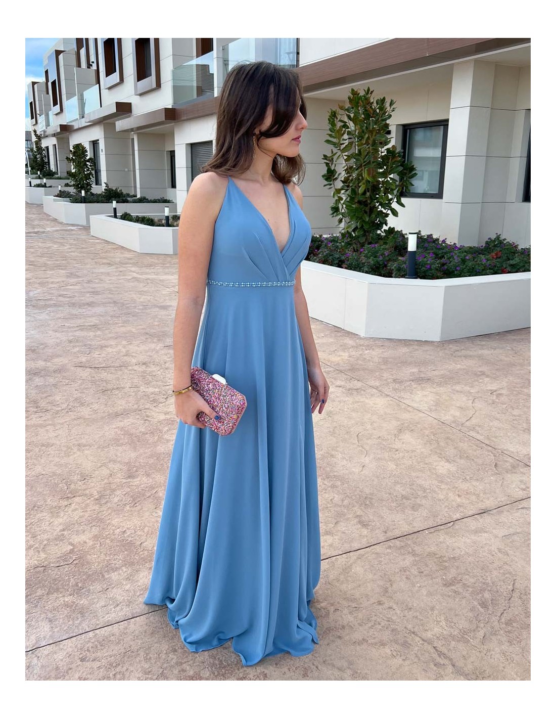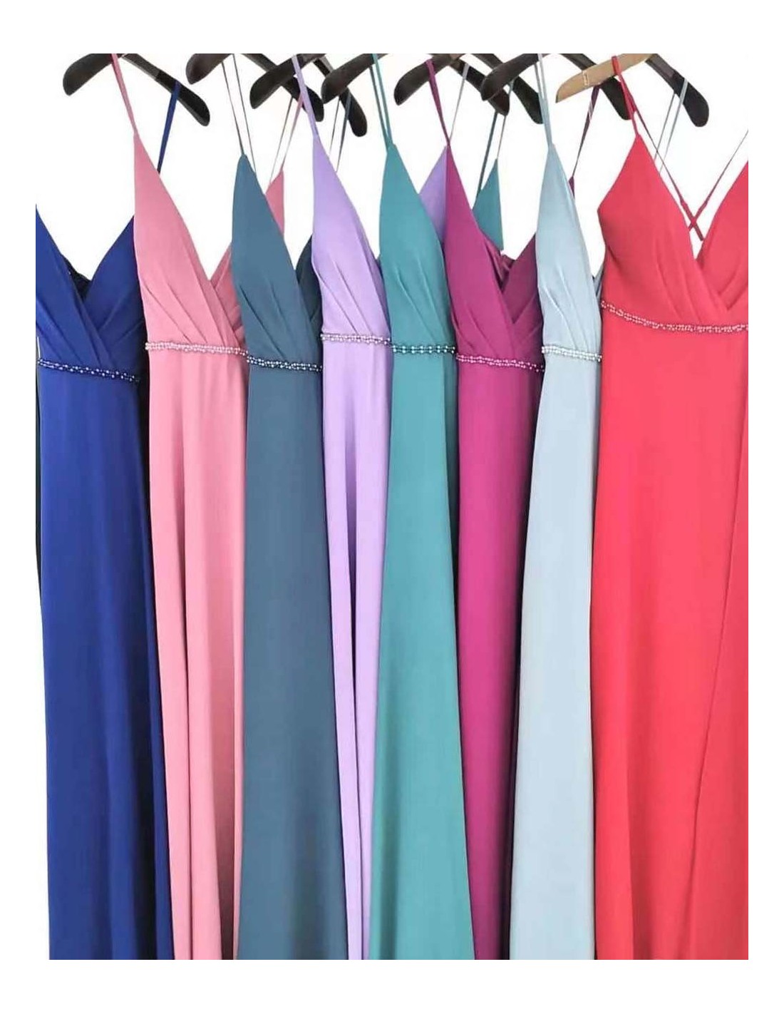 Robe longue de soirée avec décolleté en V profond, disponible en plusieurs coloris