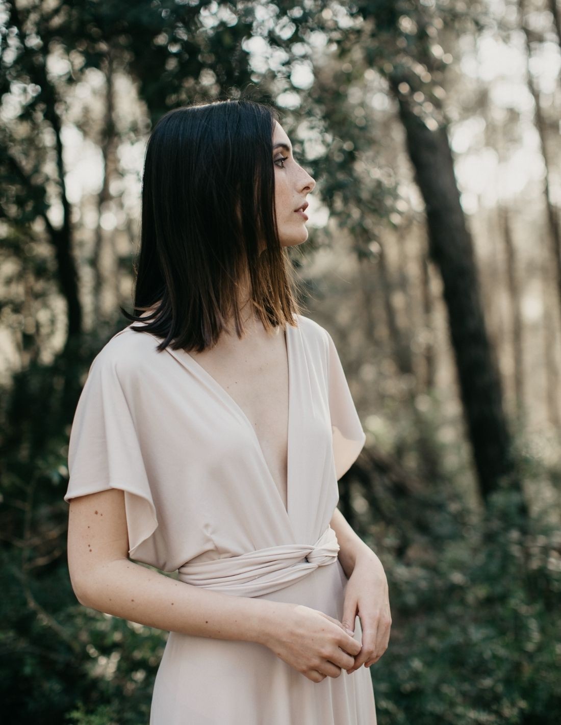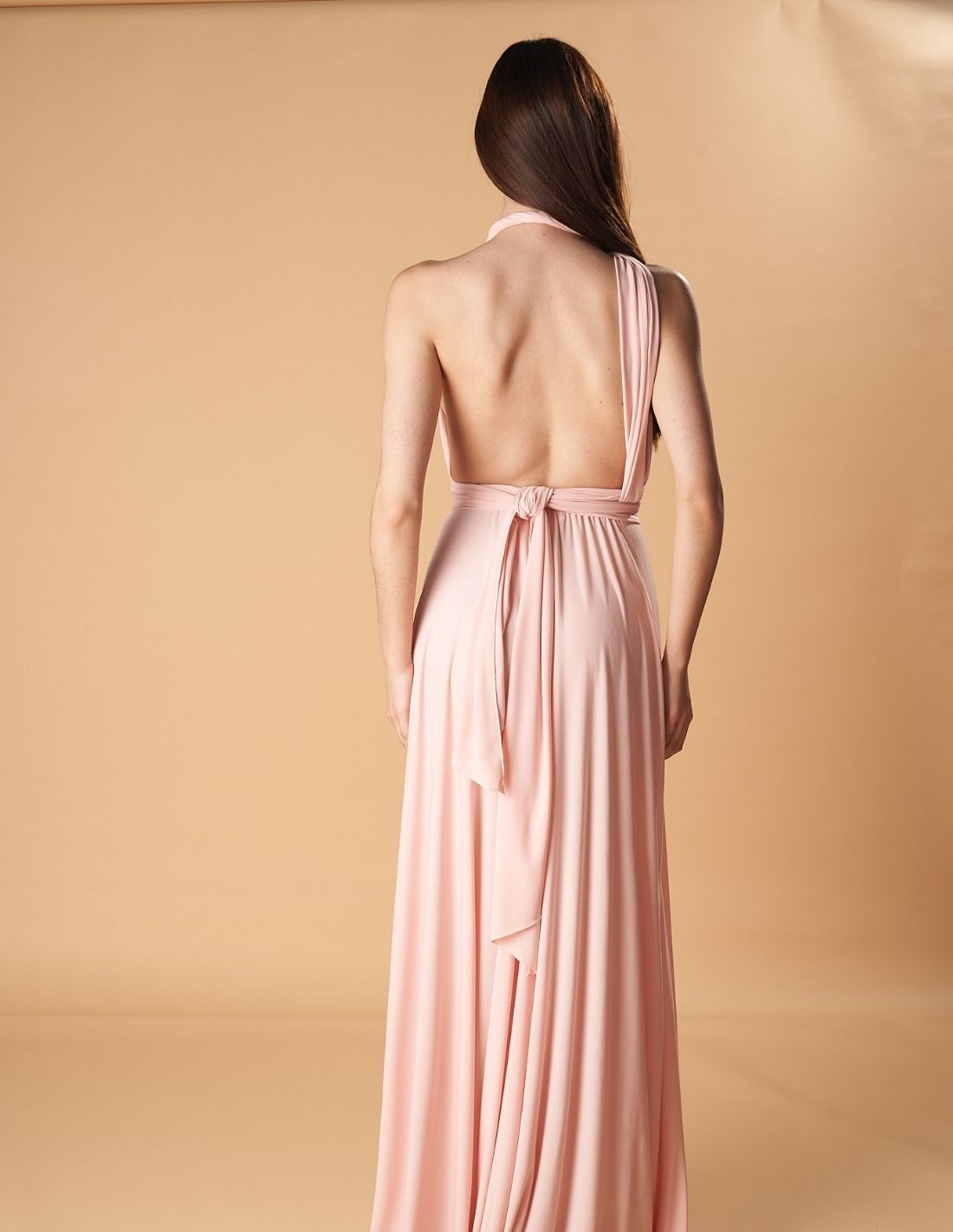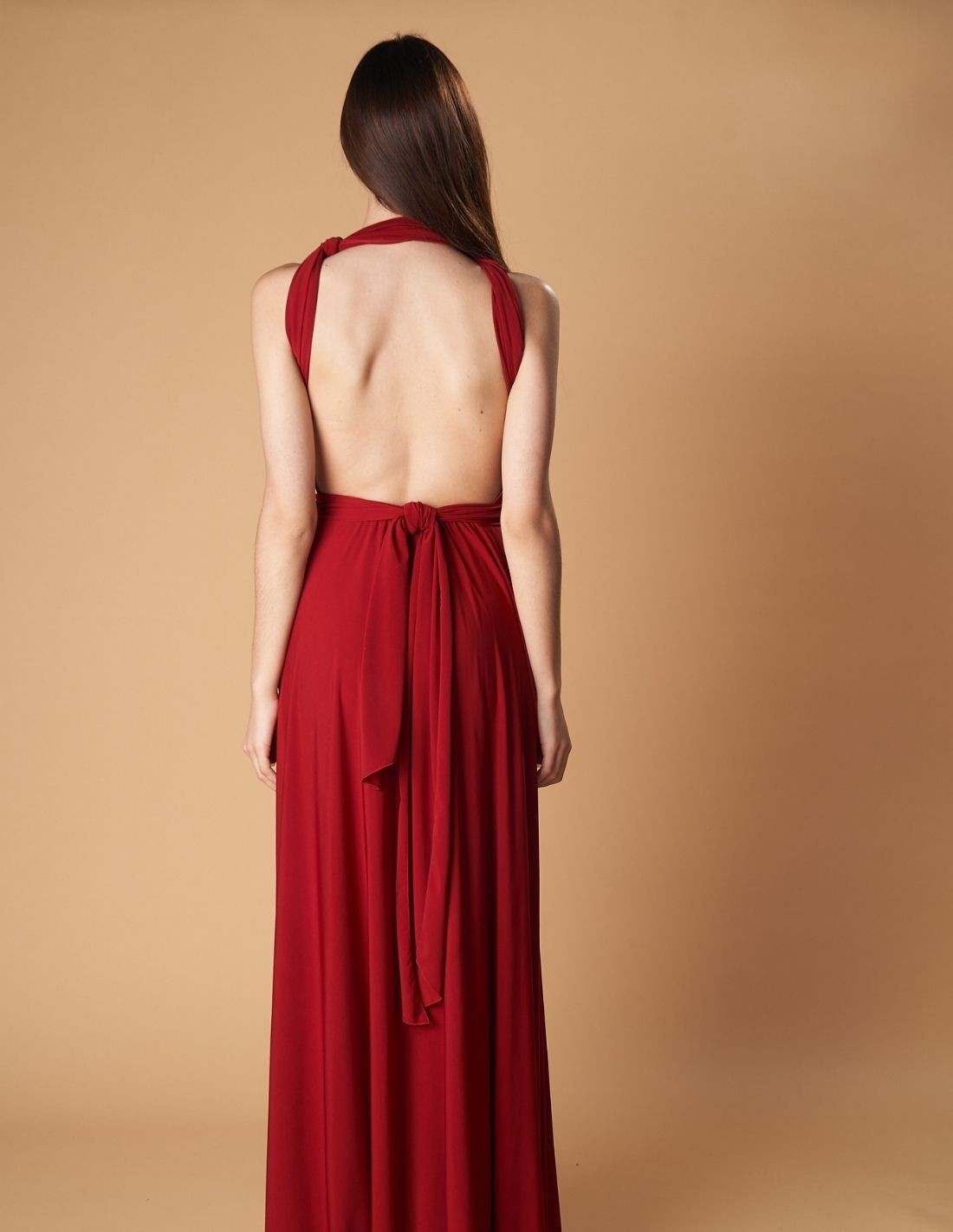 Robe longue de fête multipositions avec fente latérale pour les grandes occasions.