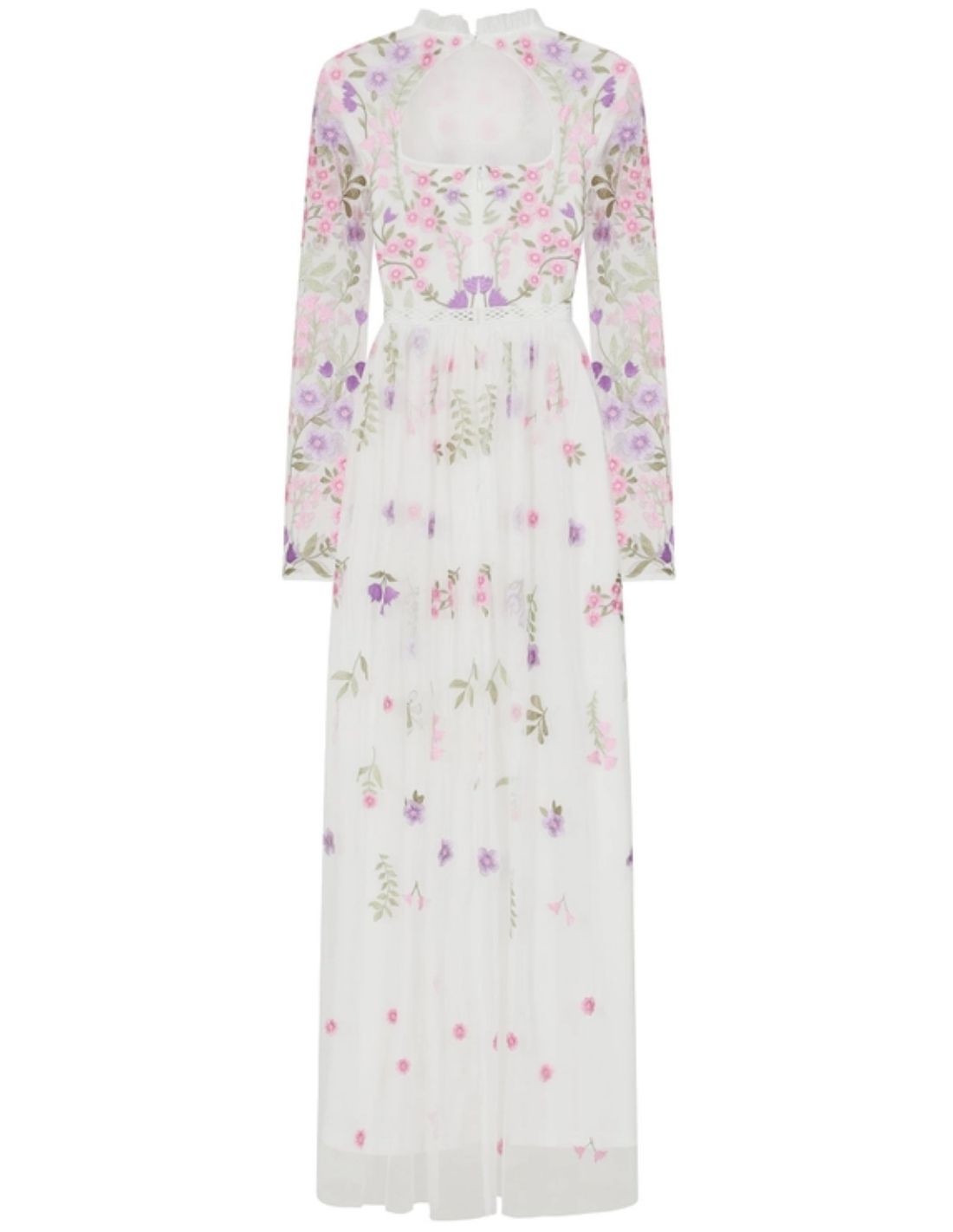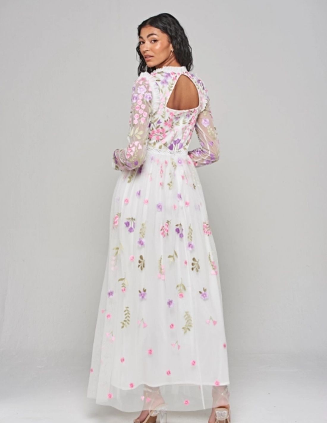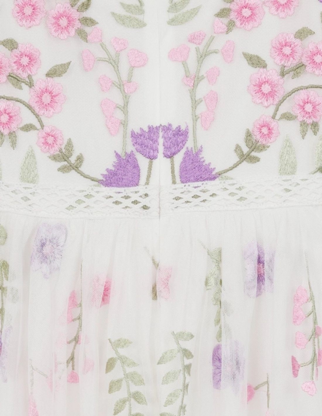 Robe longue blanche en tulle brodé de fleurs