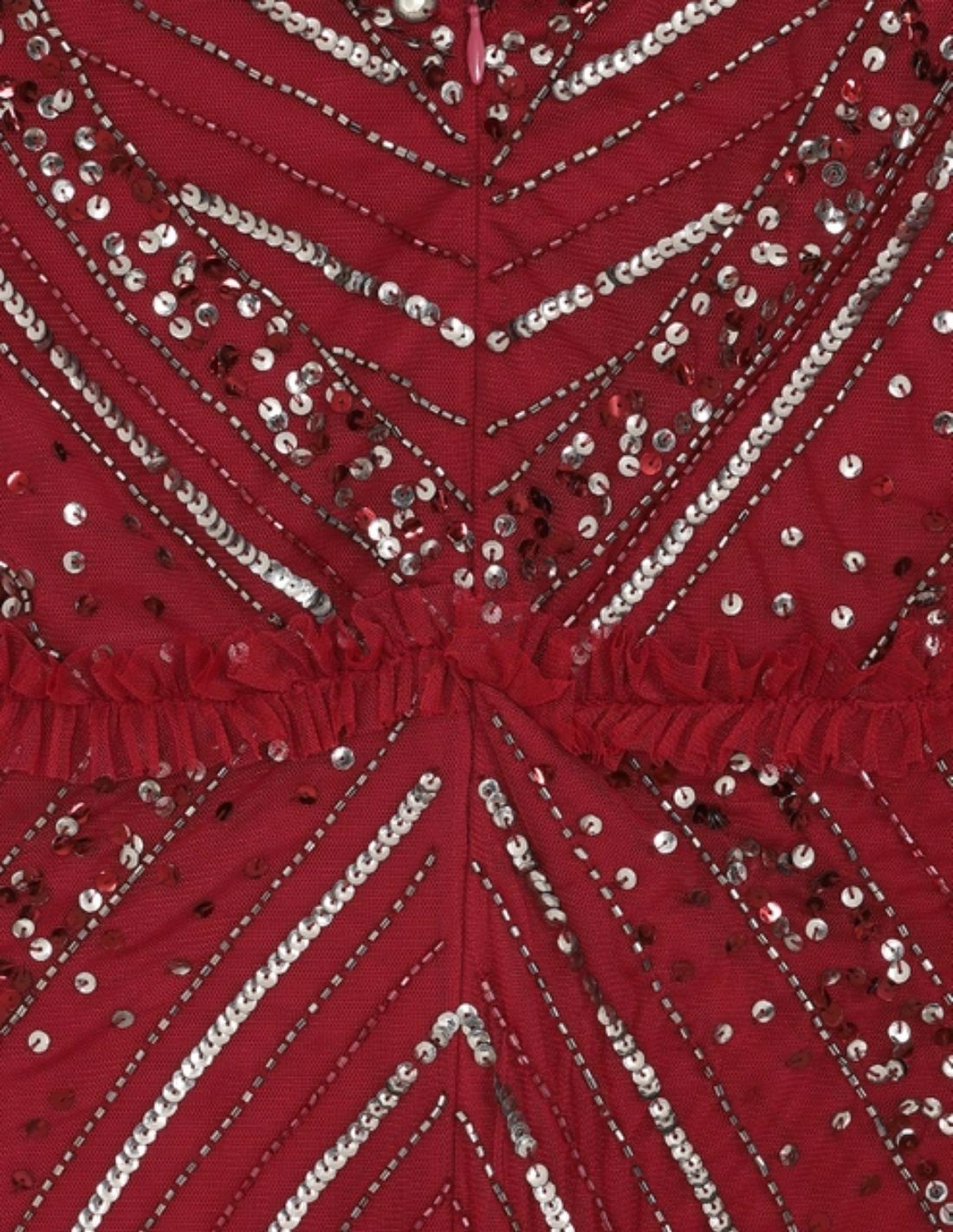 Robe longue de fête bordeaux avec sequins et volants