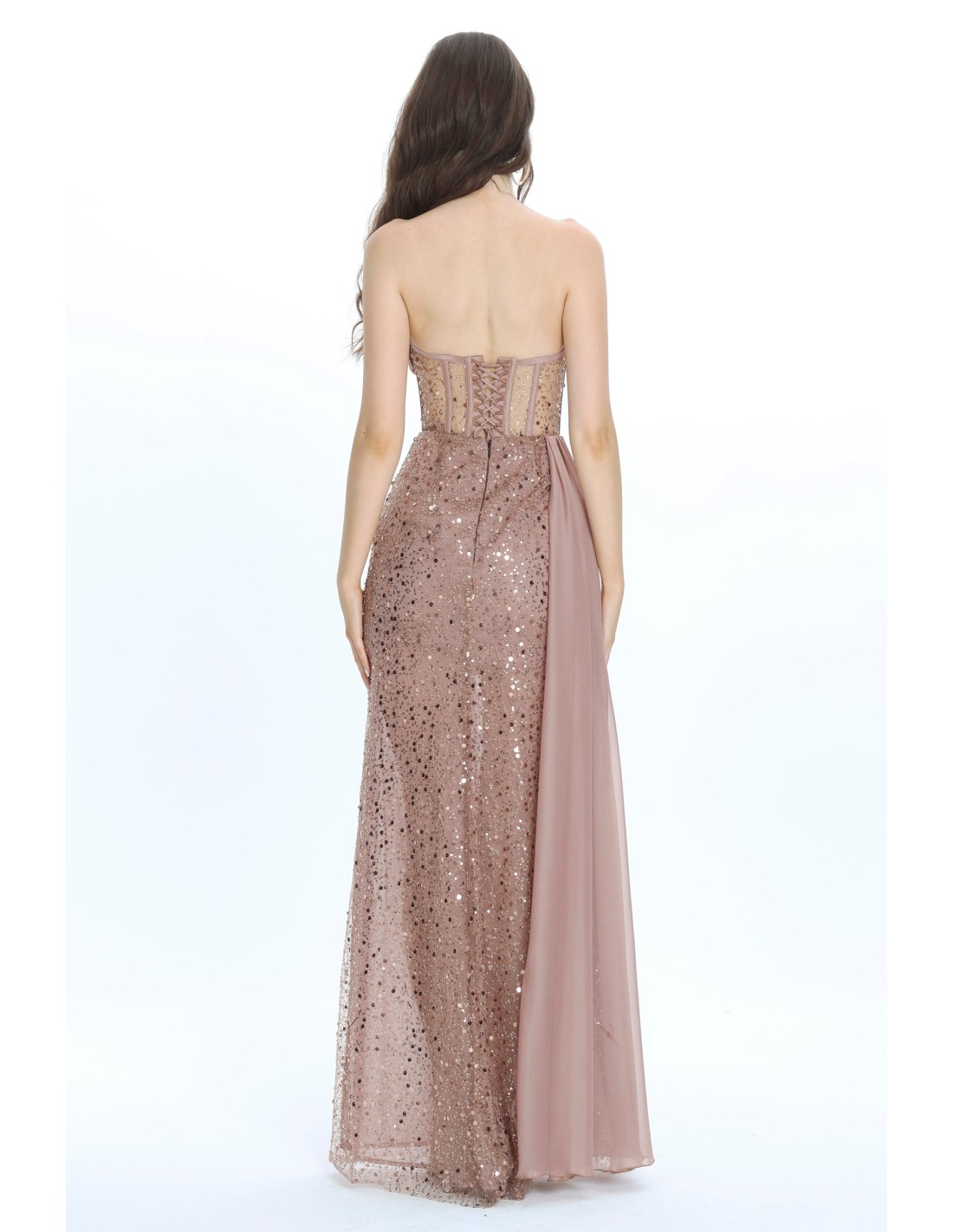 Robe longue de soirée sans bretelles pour le soir et les invités de soirée