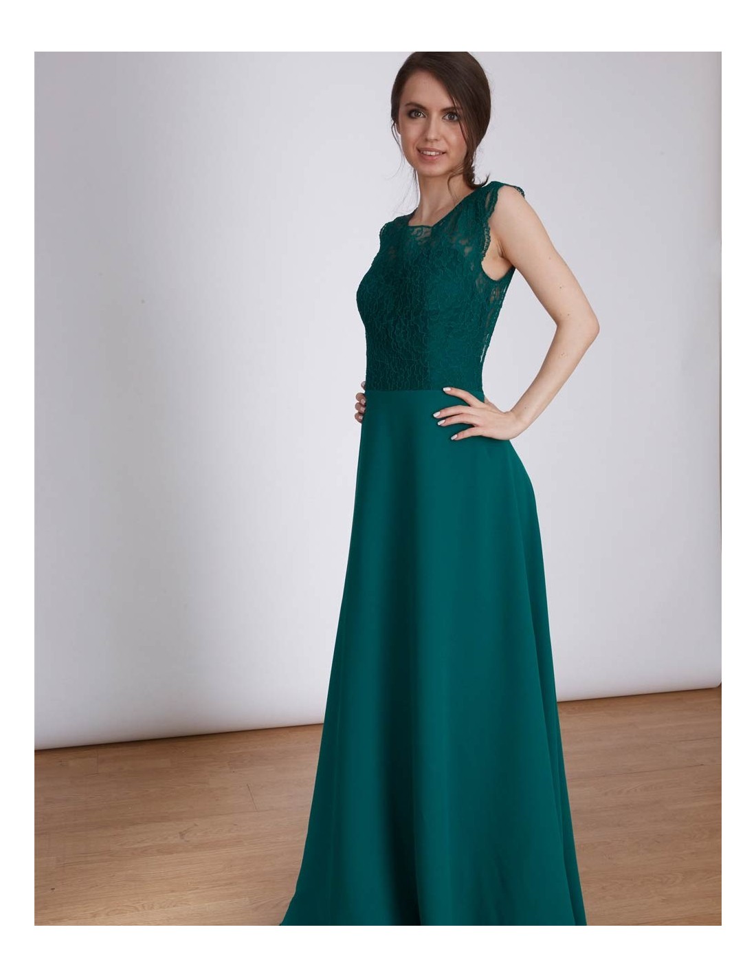 Robe longue de fête en dentelle avec dos ouvert Emma