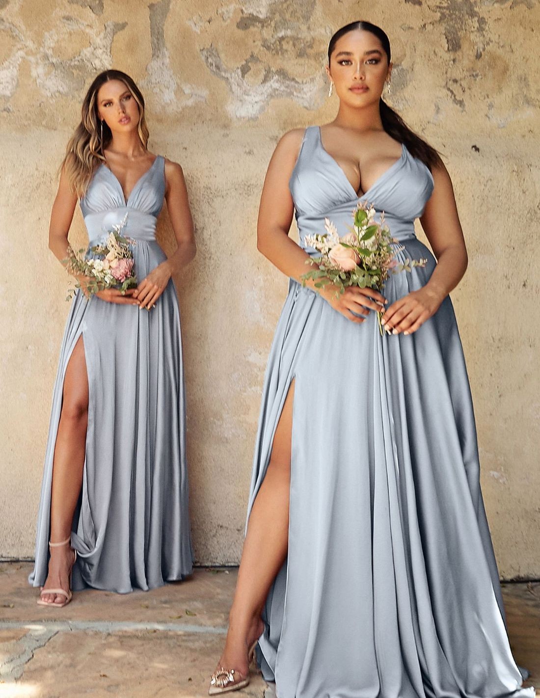 Longue robe de soirée en satin avec décolleté en V et ceinture, idéale pour les demoiselles d'honneur. Une robe très spéciale, élégante et sophistiquée qui vous fera briller. Elle présente un design très simple avec des bretelles et un décolleté en V à l'avant et à l'arrière. Elle est également dotée d'une fente sur le côté pour votre plus grand confort. Sans aucun doute, un modèle qui attirera tous les regards.