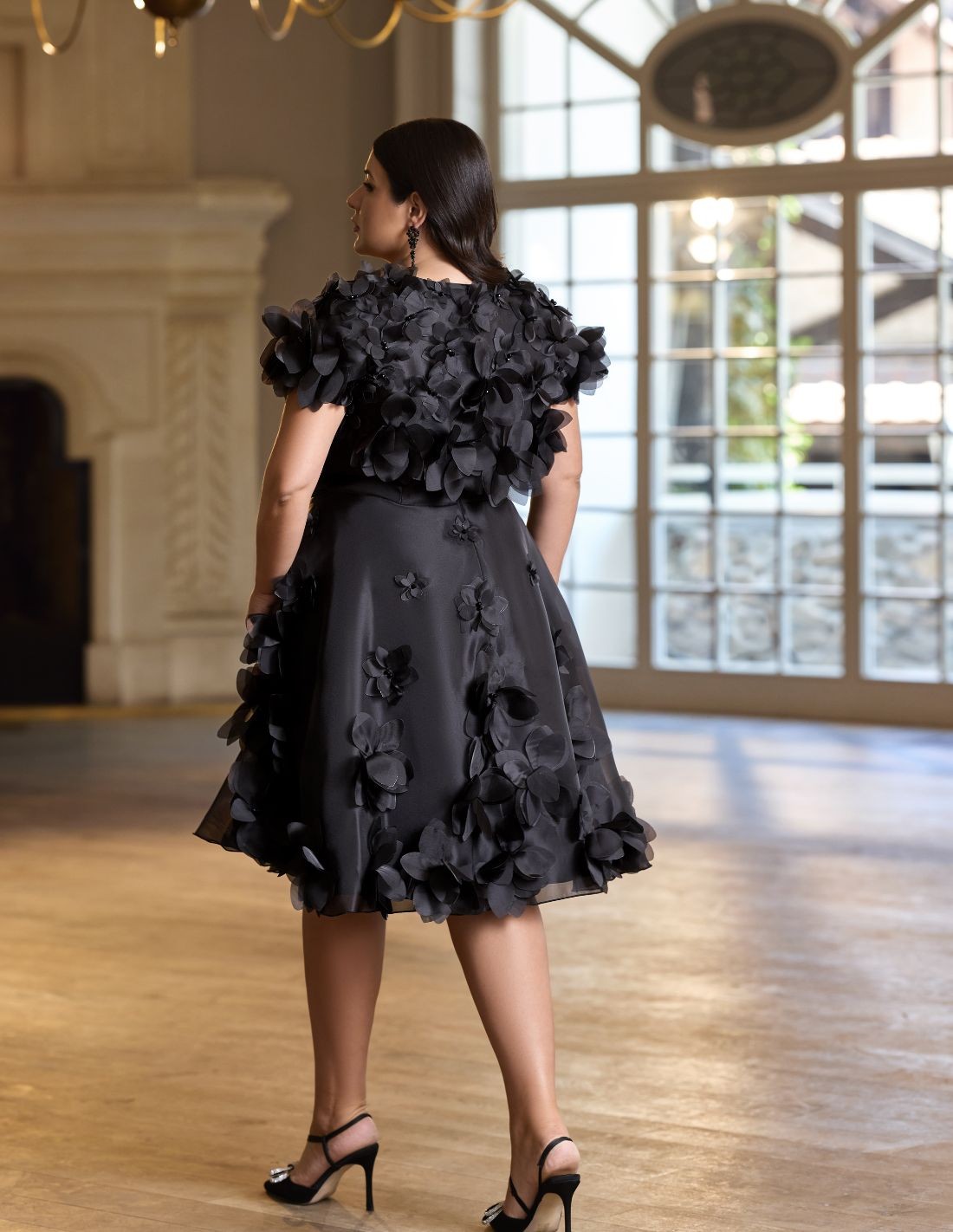 Cette longue robe d'invitée avec des fleurs en 3D est idéale. Le modèle est sans bretelles et vous pouvez ajouter ou retirer le boléro en fonction de vos goûts ou du type d'événement, car il est amovible et fait à la main avec des fleurs en 3D, comme la jupe. Le corset drapé à la taille met en valeur la silhouette. Il est doté d'une fermeture à glissière au dos et d'un cordon de serrage intérieur pour un ajustement confortable. La jupe peut être réalisée en deux versions, longue et courte. Vous pouvez choisir entre le rose, le vert ou le noir.