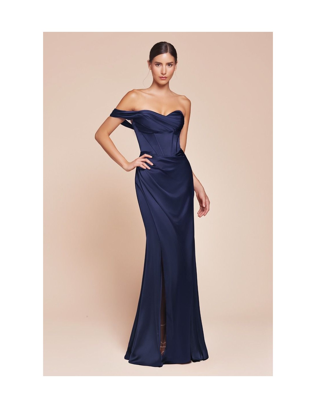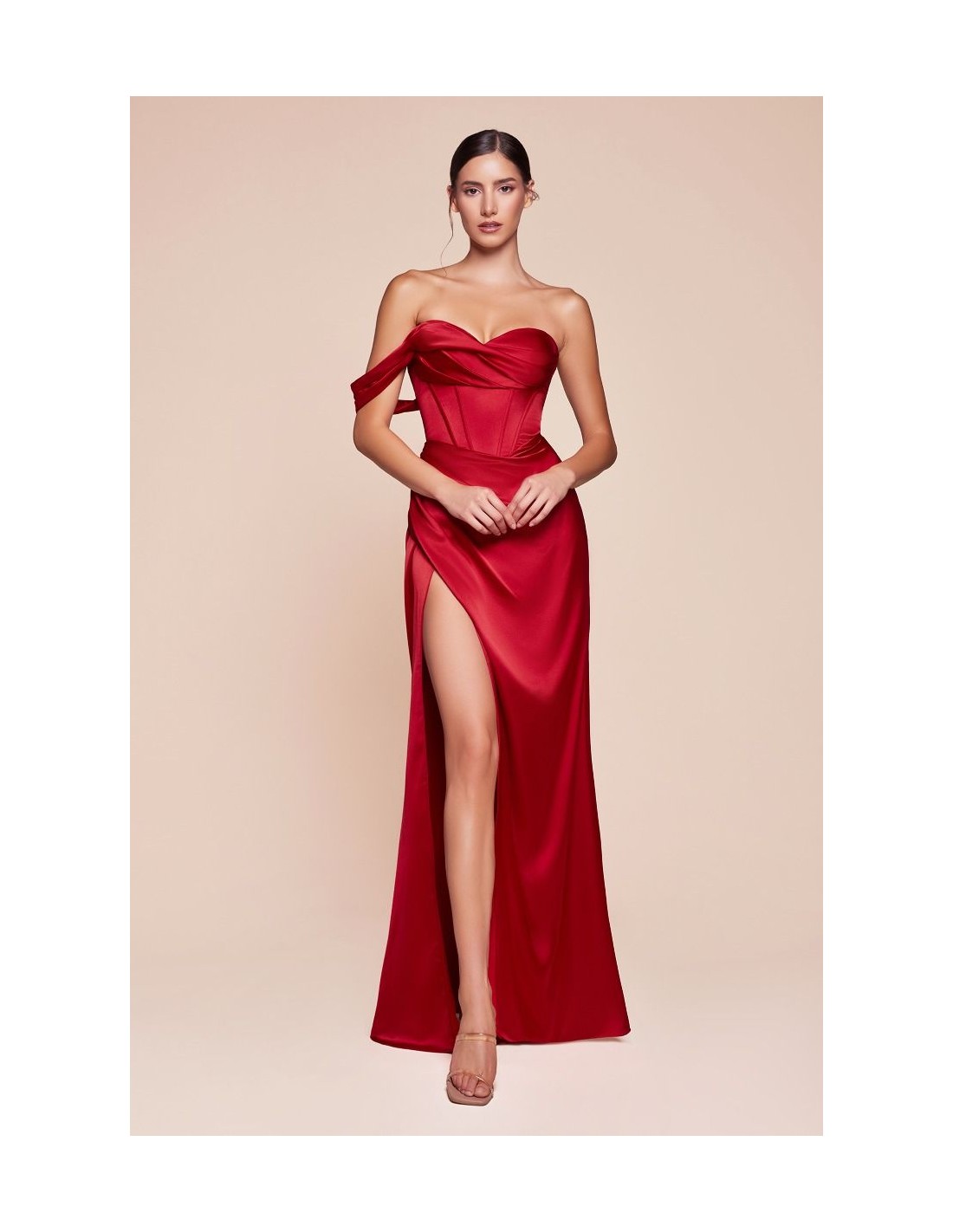 Longue robe de fête en satin avec décolleté en cœur