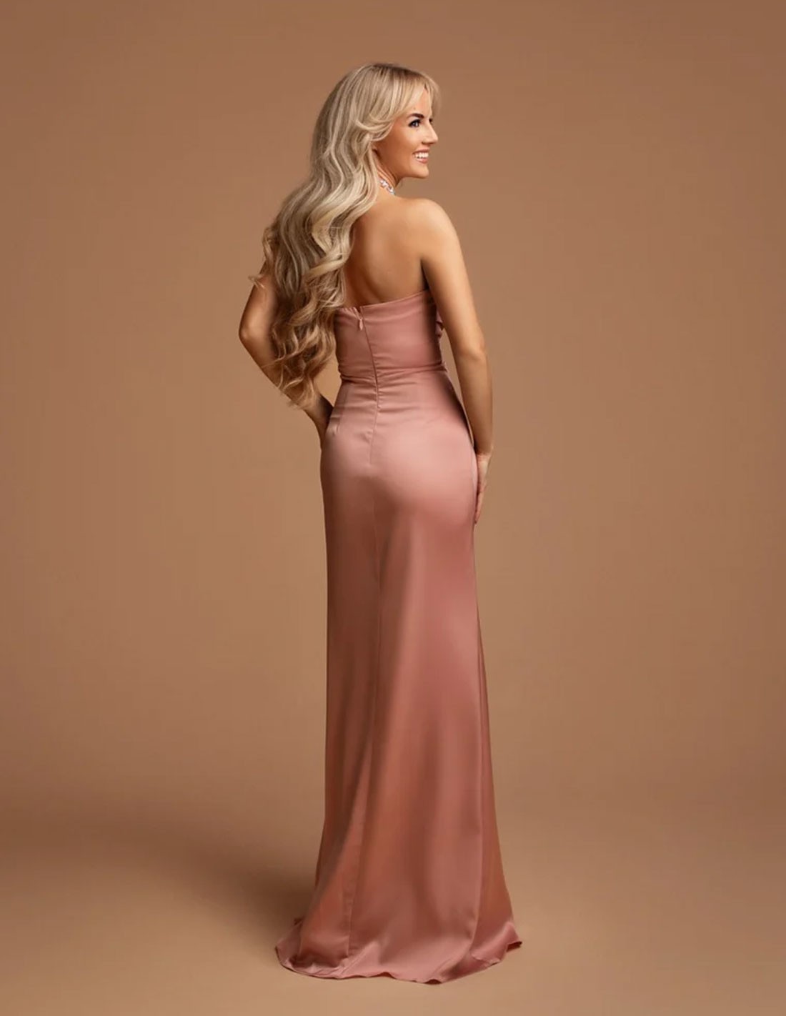 Éblouissez à chaque événement dans cette spectaculaire robe longue pour invités, conçue pour les femmes qui recherchent la sophistication et le style. Son encolure dos nu ornée de strass ajoute une touche de glamour, tandis que sa coupe fluide met élégamment en valeur la silhouette.