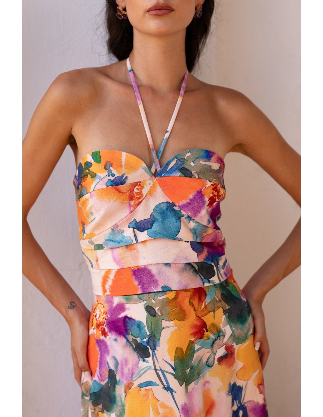 Robe d'invité blanche décolletée à l'encolure dos nu, imprimée de fleurs