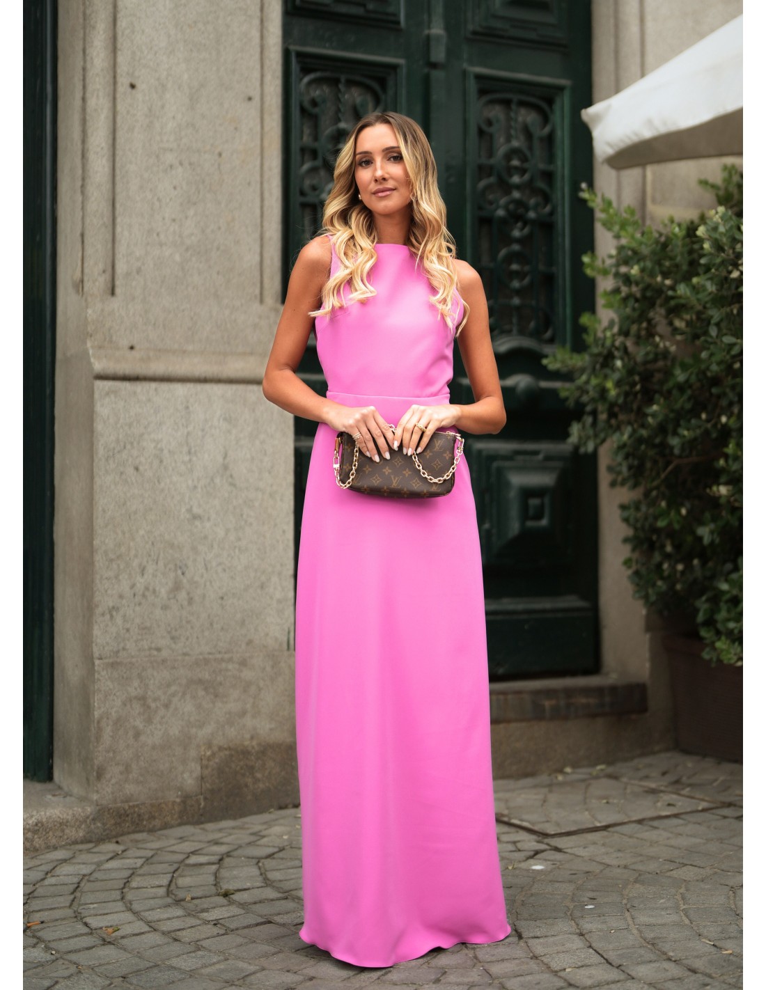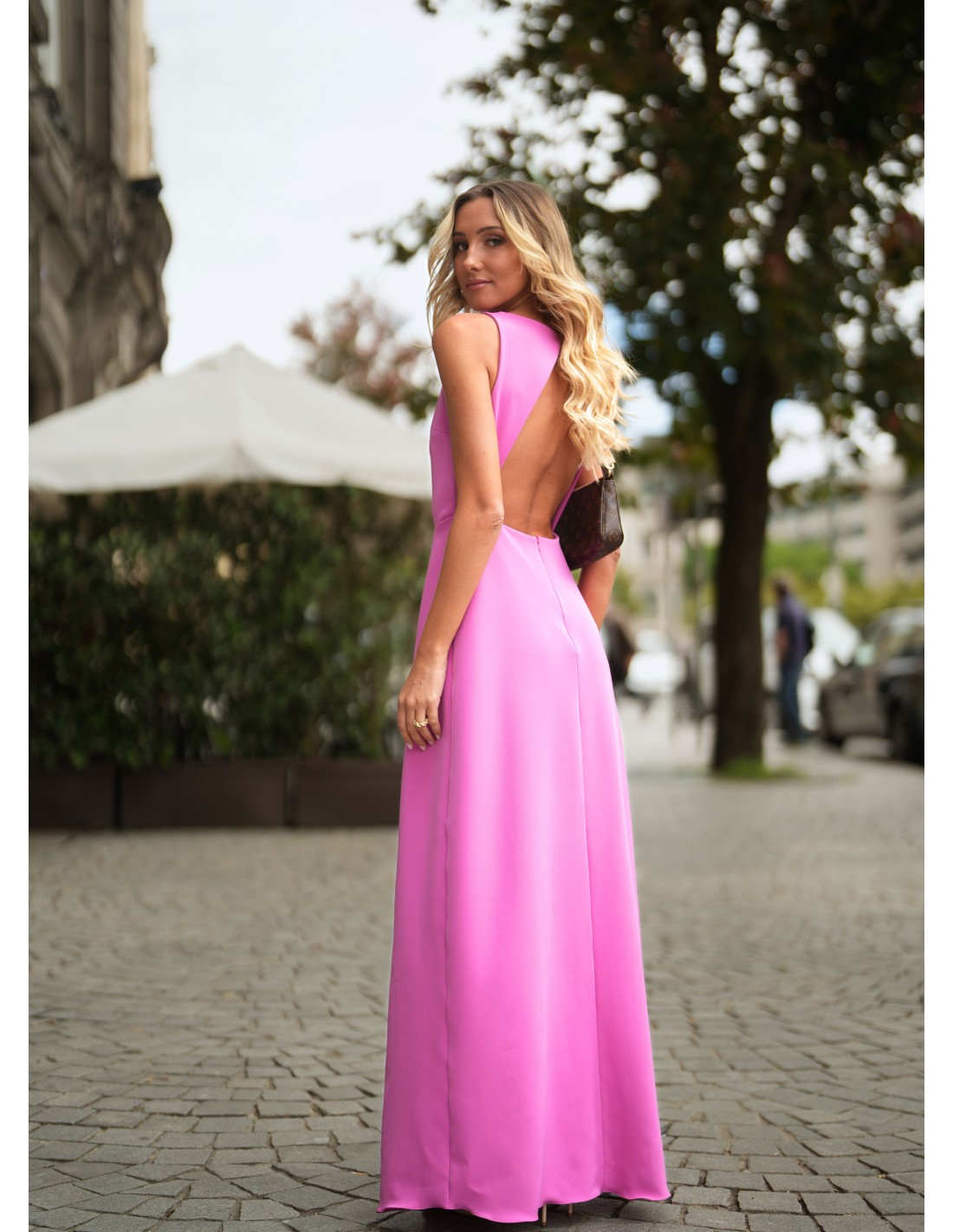 Éblouissez lors de votre prochain événement avec cette longue robe rose à l'encolure bateau et au dos ouvert avec un bouton à l'encolure et une fermeture invisible au bas. Ce vêtement est entièrement doublé. Idéale pour les mariages en soirée ou même les remises de diplômes, un look parfait qui vous fera briller à coup sûr. Associez-le à des accessoires dorés.