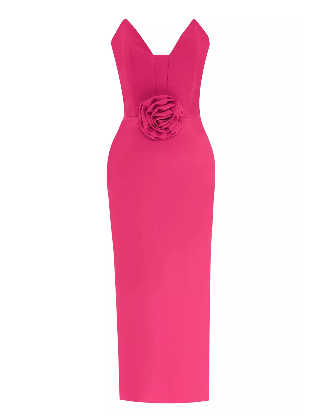 Robe de cocktail sans bretelles avec fleur maxi