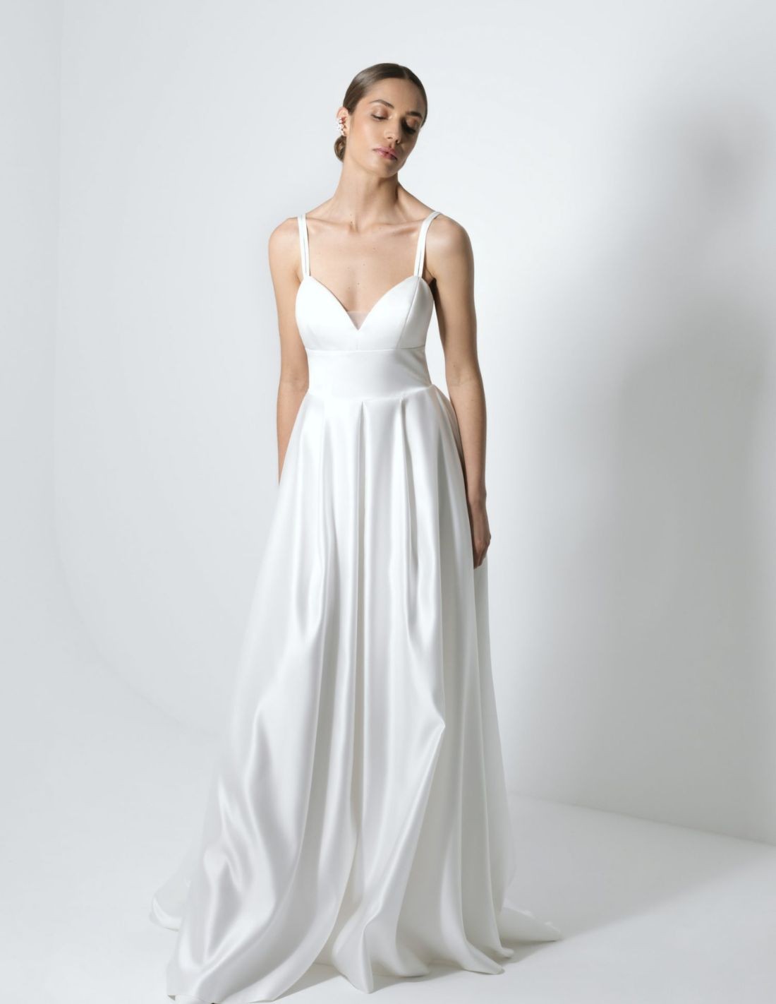 Robe de mariée idéale avec une coupe princesse et un dos croisé.