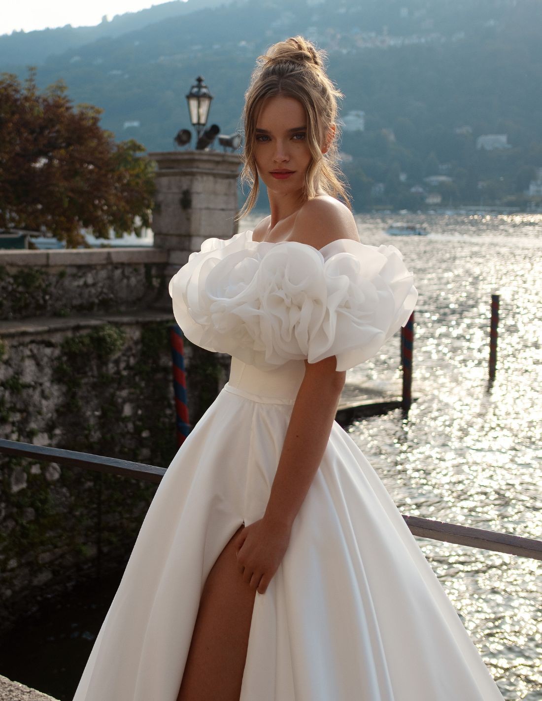 Parfaite pour les mariées qui souhaitent se démarquer lors de leur mariage avec une robe classique, mais avec des détails modernes et sophistiqués.