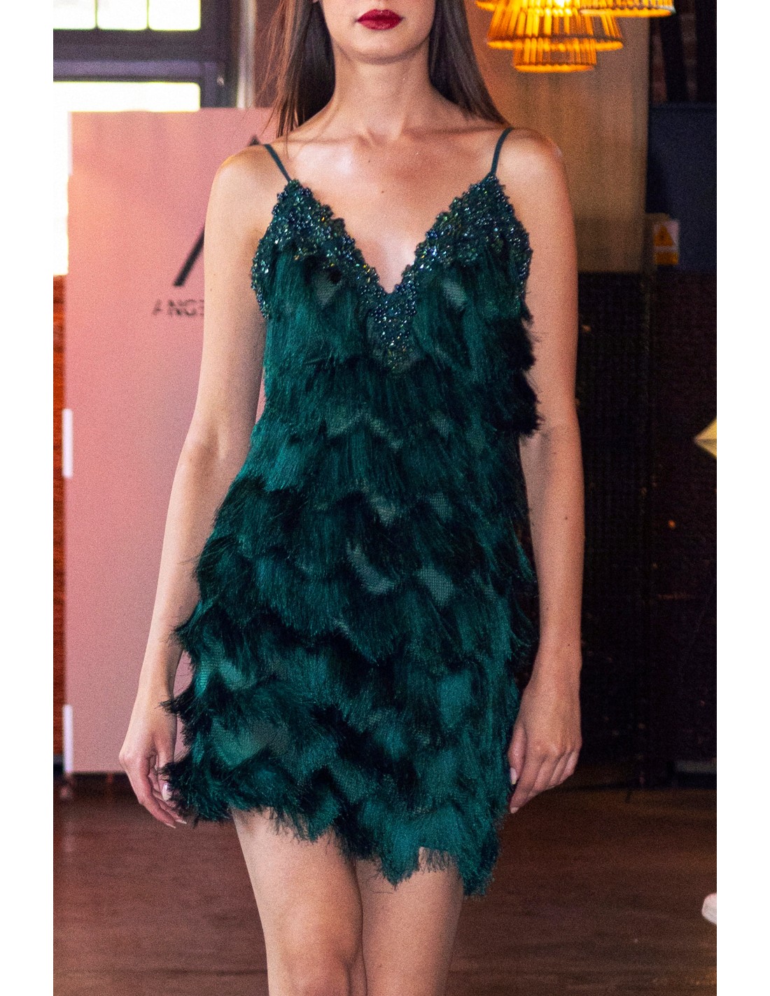 Superbe robe de cocktail verte avec dentelle brodée et sequins conçue avec un textile unique qui garantit un style inégalé. Le haut de la Robe est méticuleusement confectionné à la main avec de la dentelle brodée, agrémentée de sequins étincelants et de perles élégantes, ajoutant une touche de glamour et de distinction à votre look.