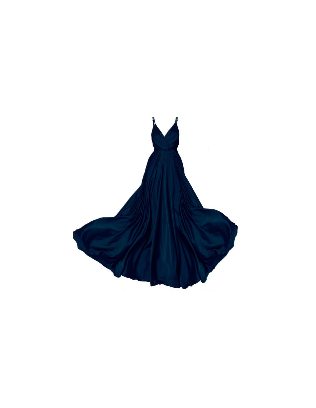 Longue robe de soirée en satin bleu avec encolure croisée