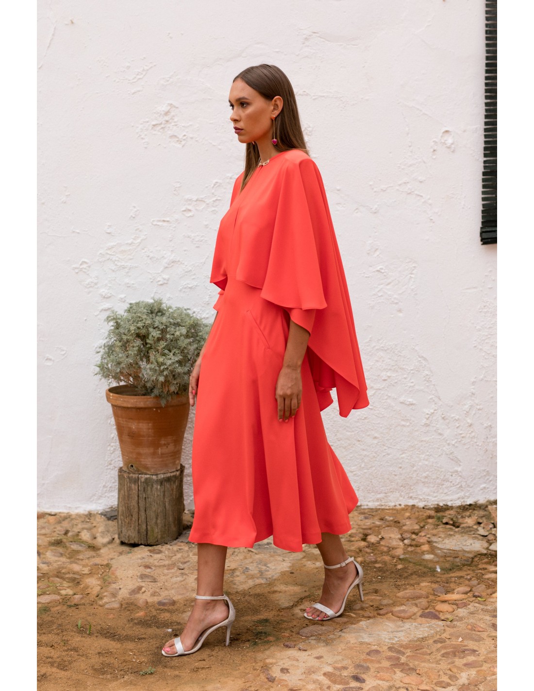 Robe midi corail avec cape