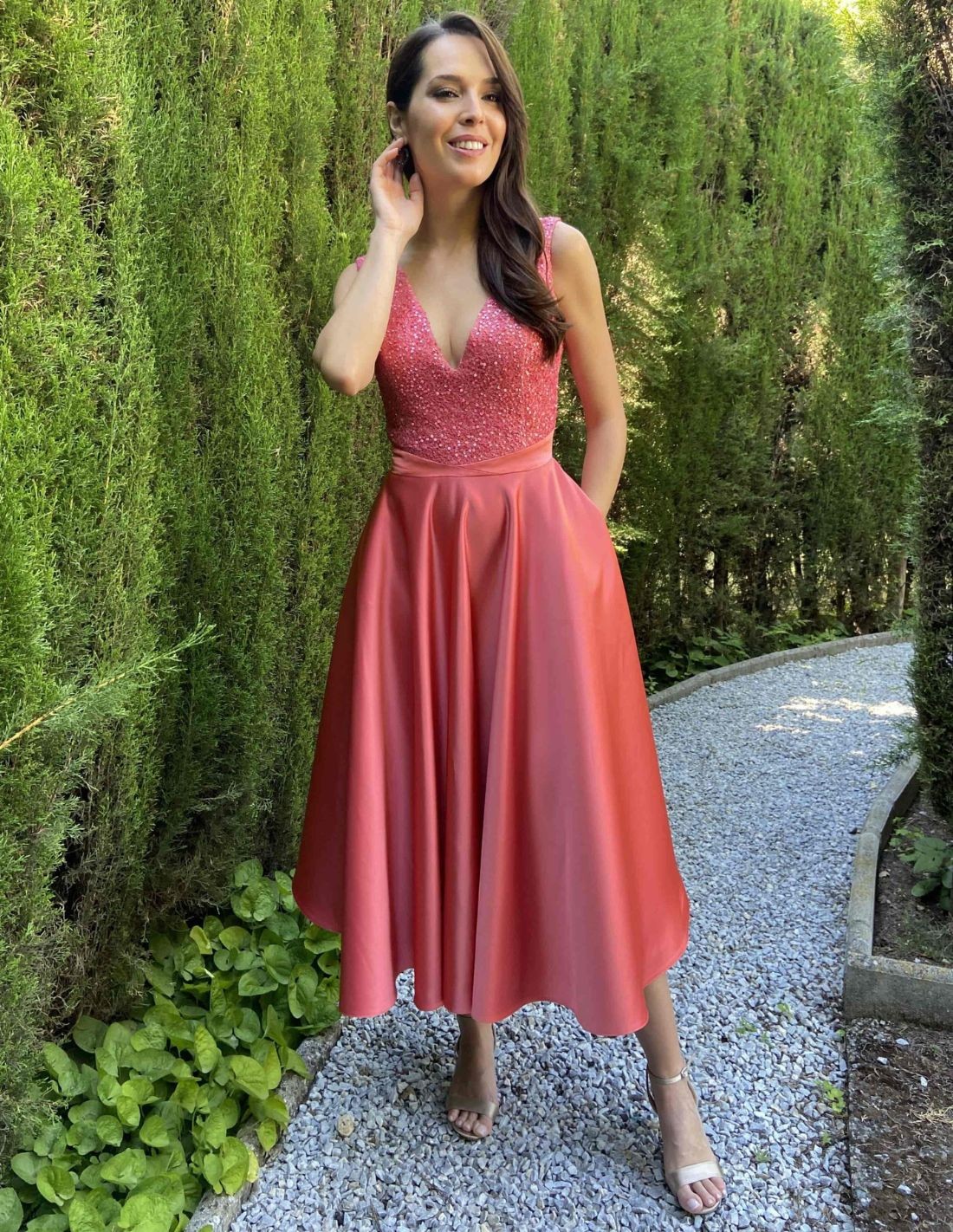 Si vous avez un événement à venir et que vous n'avez pas encore de look, cette robe midi sera un succès assuré. Une robe midi avec un corsage en strass, un dos ouvert et une jupe princesse en satin avec des poches intérieures. Idéale pour les invitées qui recherchent des looks originaux et audacieux. Disponible en deux couleurs, conçue et fabriquée à la main en Espagne.