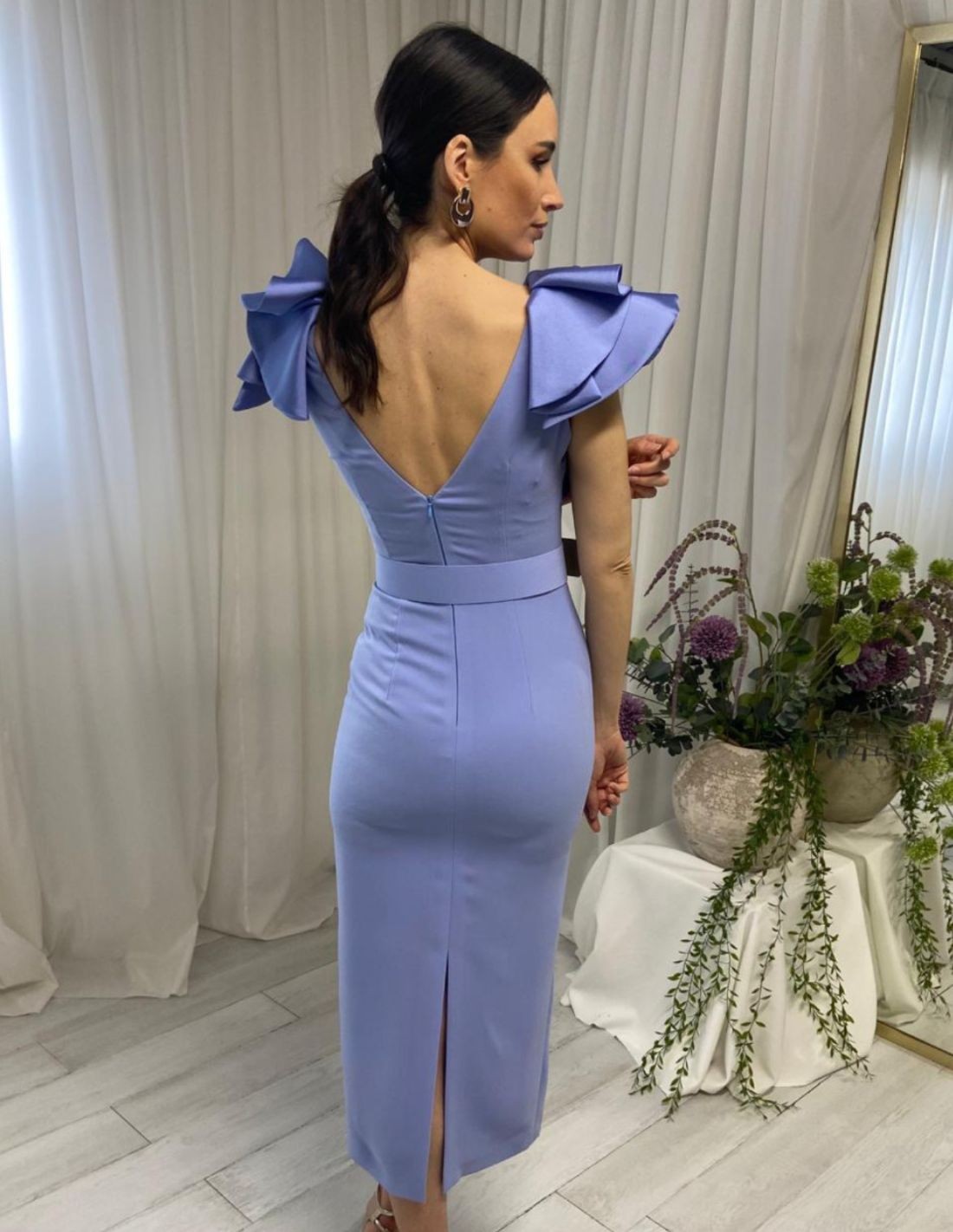Si vous faites partie de ces invitées qui recherchent l'élégance et la simplicité dans un même vêtement, mais que vous aimez faire la différence par de petits détails, cette robe midi sera un succès assuré. Une robe à la coupe midi, avec des volants sur les manches, et une ceinture amovible incorporée pour accentuer la taille et mettre en valeur la silhouette. Disponible en plusieurs couleurs : rouge, bordeaux, bleu et mauve. Conçu et fabriqué à la main en Espagne.
