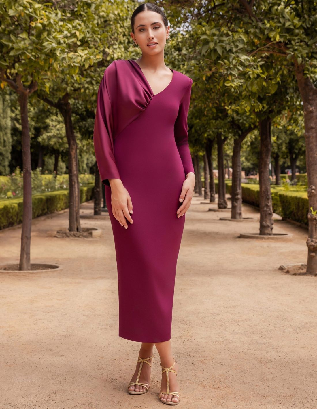 Si vous voulez être une invitée parfaite, cette robe midi d' invitée vous fera briller. Un modèle original et élégant pour les événements de jour et de nuit, les mariages, les communions, les baptêmes... Décolleté en V et manches longues, l'une d'entre elles étant en satin dans le même ton. Une robe élégante et sophistiquée qui fera de vous une invitée parfaite, elle deviendra votre préférée !