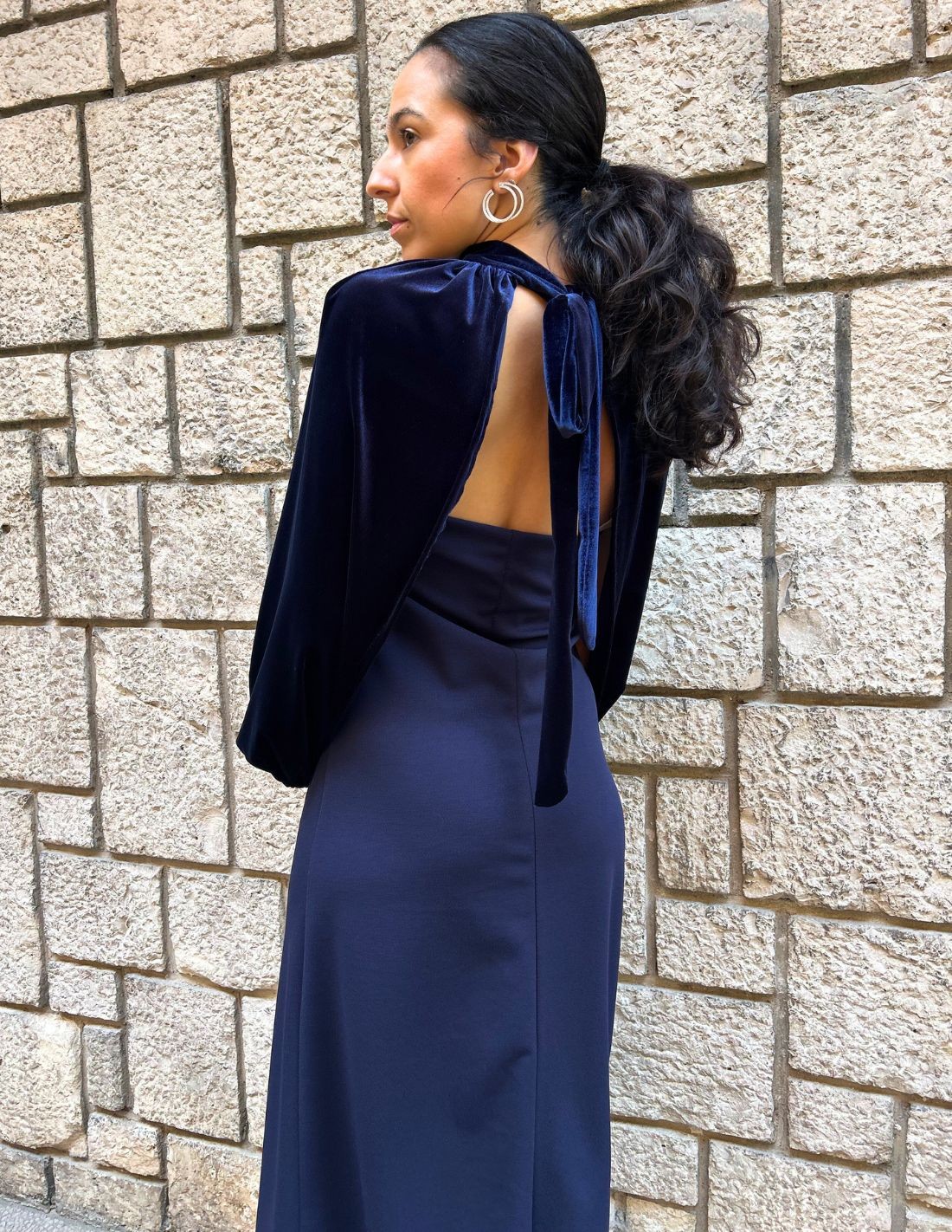 Éblouissez d'élégance lors de votre prochain événement avec cette robe midi bleu marine. Le décolleté sans bretelles met délicatement en valeur les épaules et l'encolure pour une sensation sophistiquée et féminine. Les manches en velours ajoutent de la texture et une touche de luxe, créant un contraste subtil qui rehausse le design. Parfaite pour les mariages, les dîners de gala ou les soirées, cette robe est une valeur sûre pour les invitées qui souhaitent se démarquer avec une élégance et un style intemporels.