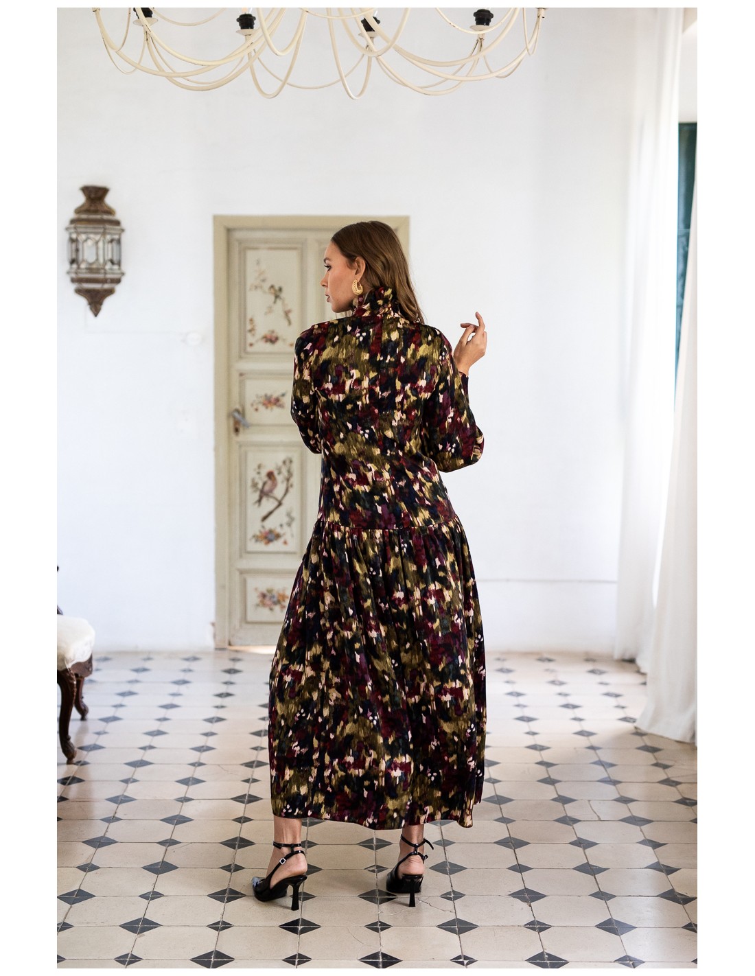 Robe midi imprimée avec hanche basse pour les événements hivernaux