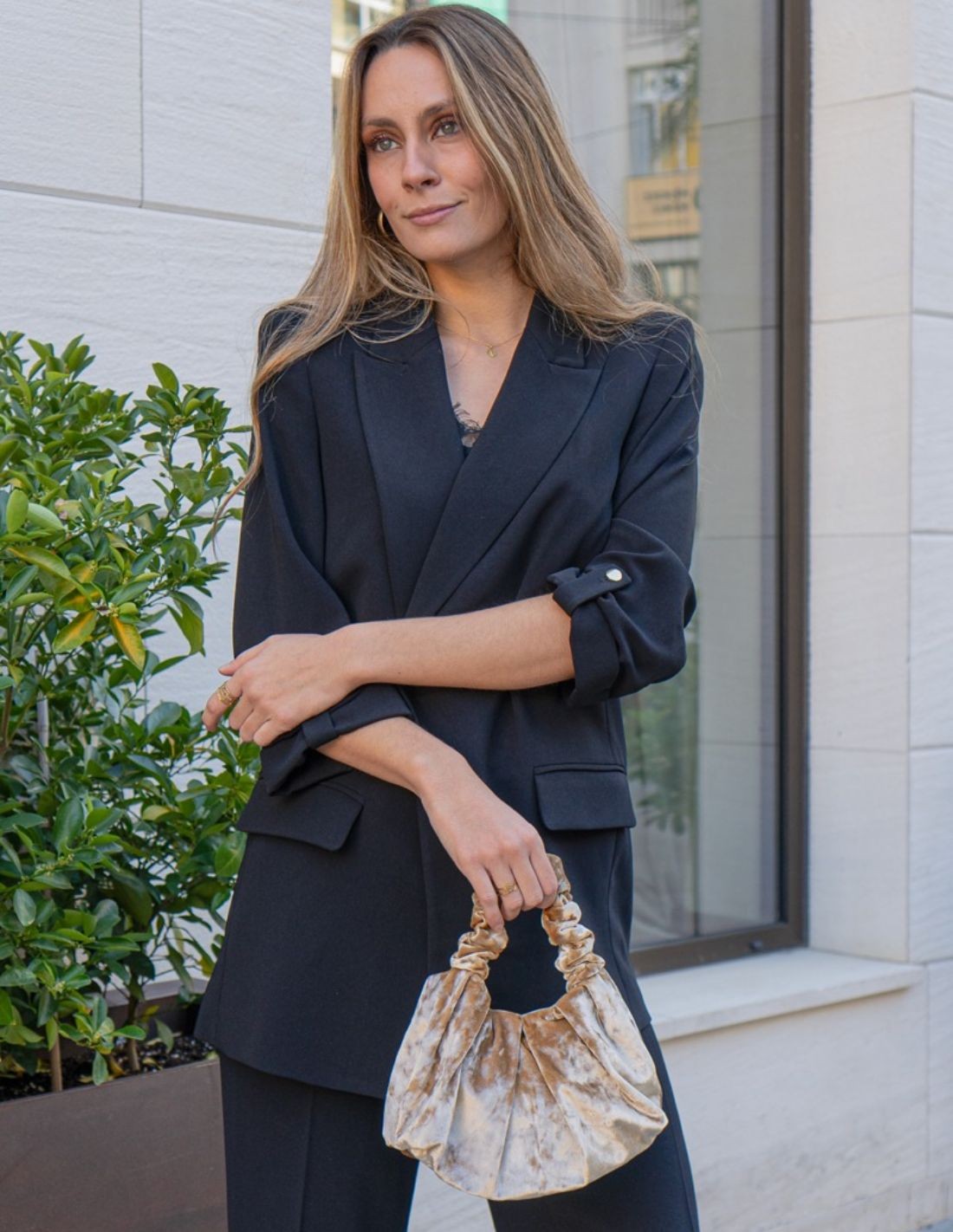 Pochette en velours froissé pour les occasions spéciales et les looks formels.