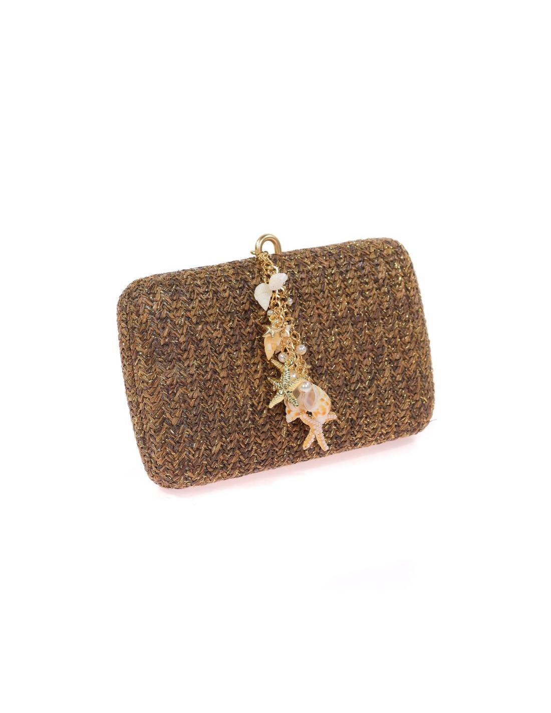 Ce charmant sac de fête est l'accessoire idéal pour toute invitée qui souhaite ajouter une touche de fraîcheur et d'élégance à son look. Le design à effet raphia et les détails en coquillages évoquent un style sophistiqué d'inspiration marine.