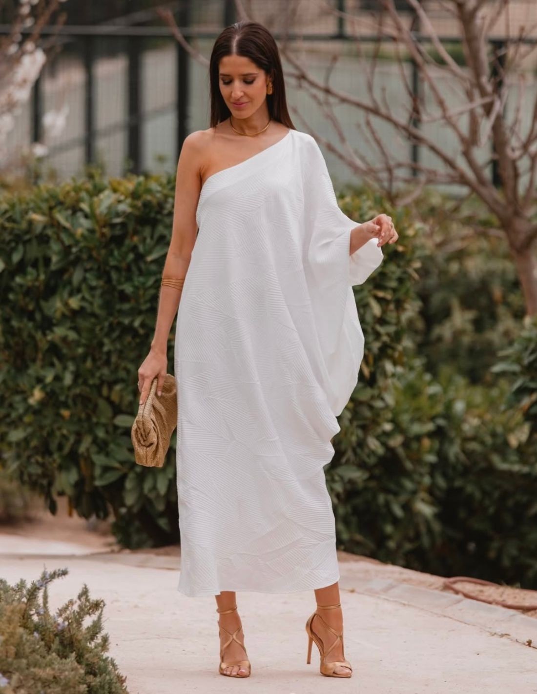 Ce sac en raphia doré est l'accessoire parfait pour ajouter une touche spéciale à n'importe quel look. Sa finition dorée lui confère luminosité et élégance, ce qui en fait un choix idéal pour les événements et les célébrations. À l'intérieur, une chaîne dorée permet de le porter à l'épaule ou en bandoulière, ce qui le rend facilement adaptable à différentes occasions.