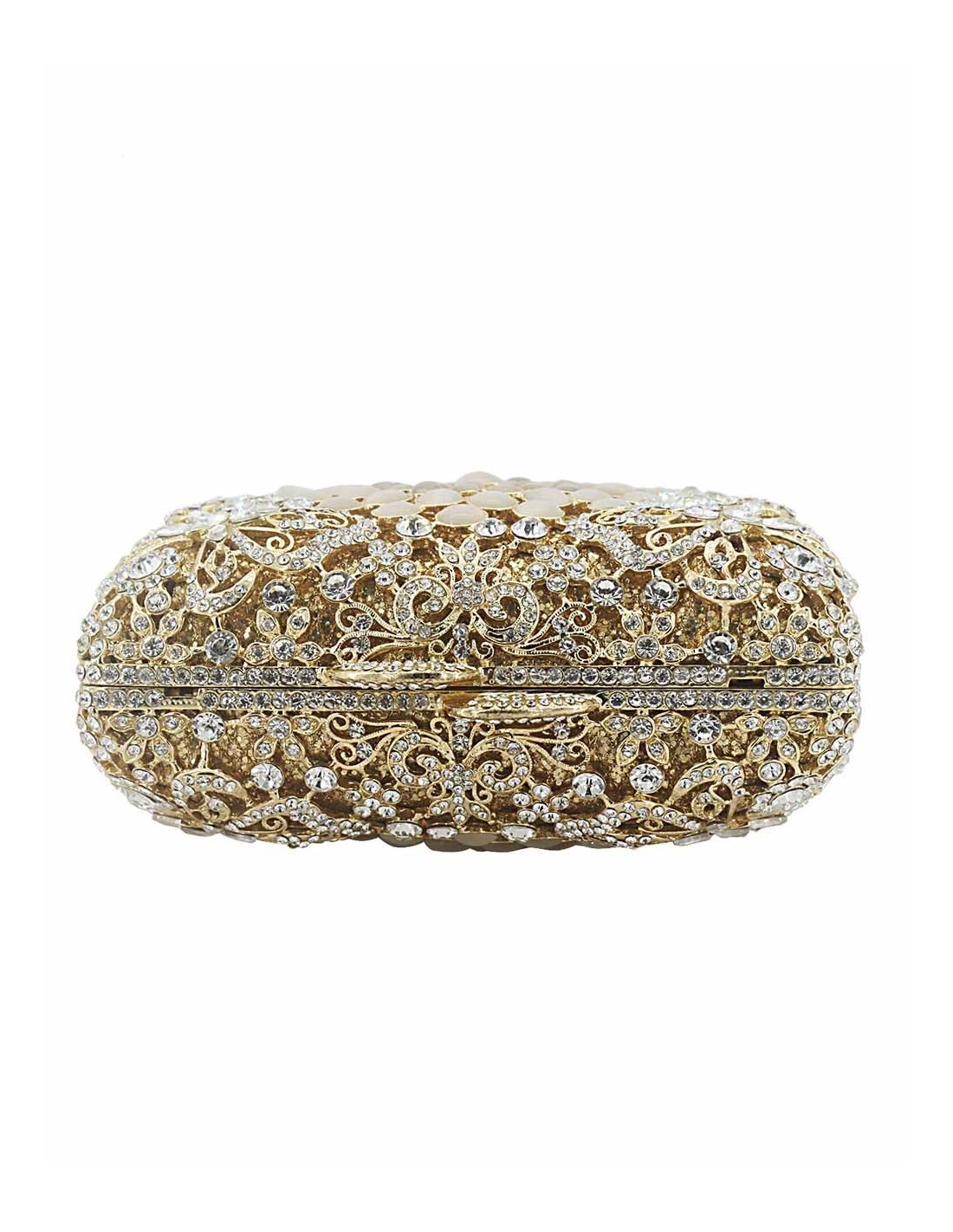 Sac de fête en métalfait main avec une décoration faite de petites fleurs et de cristaux Swarovski.