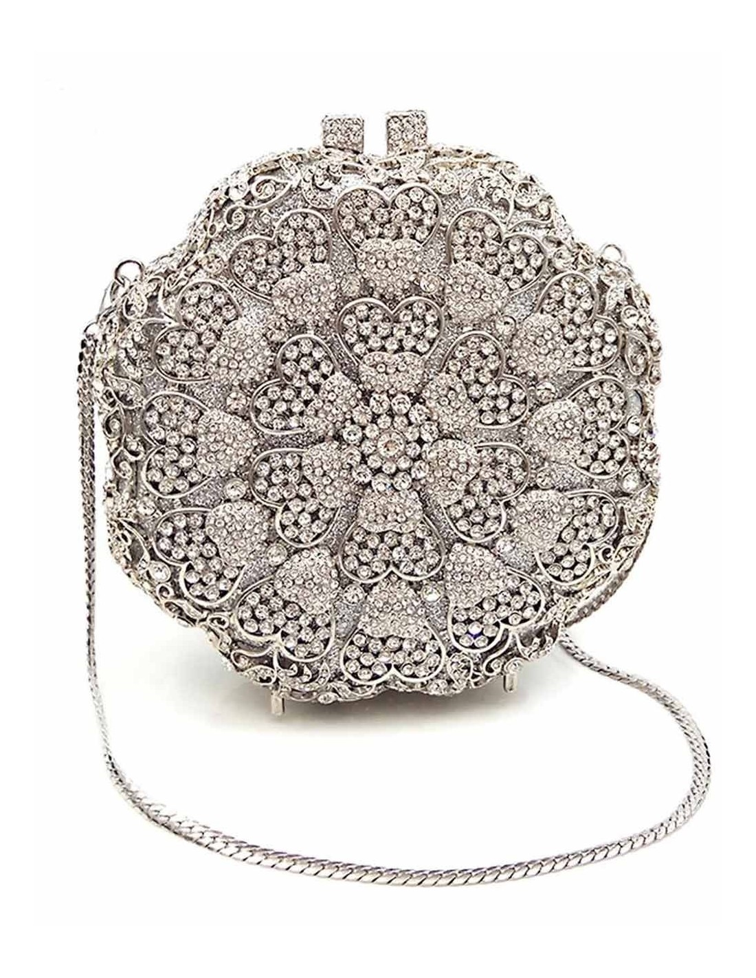 Sac de fête en métalfabriqué à la main et décoré de cristaux Swarovski en forme de grande fleur