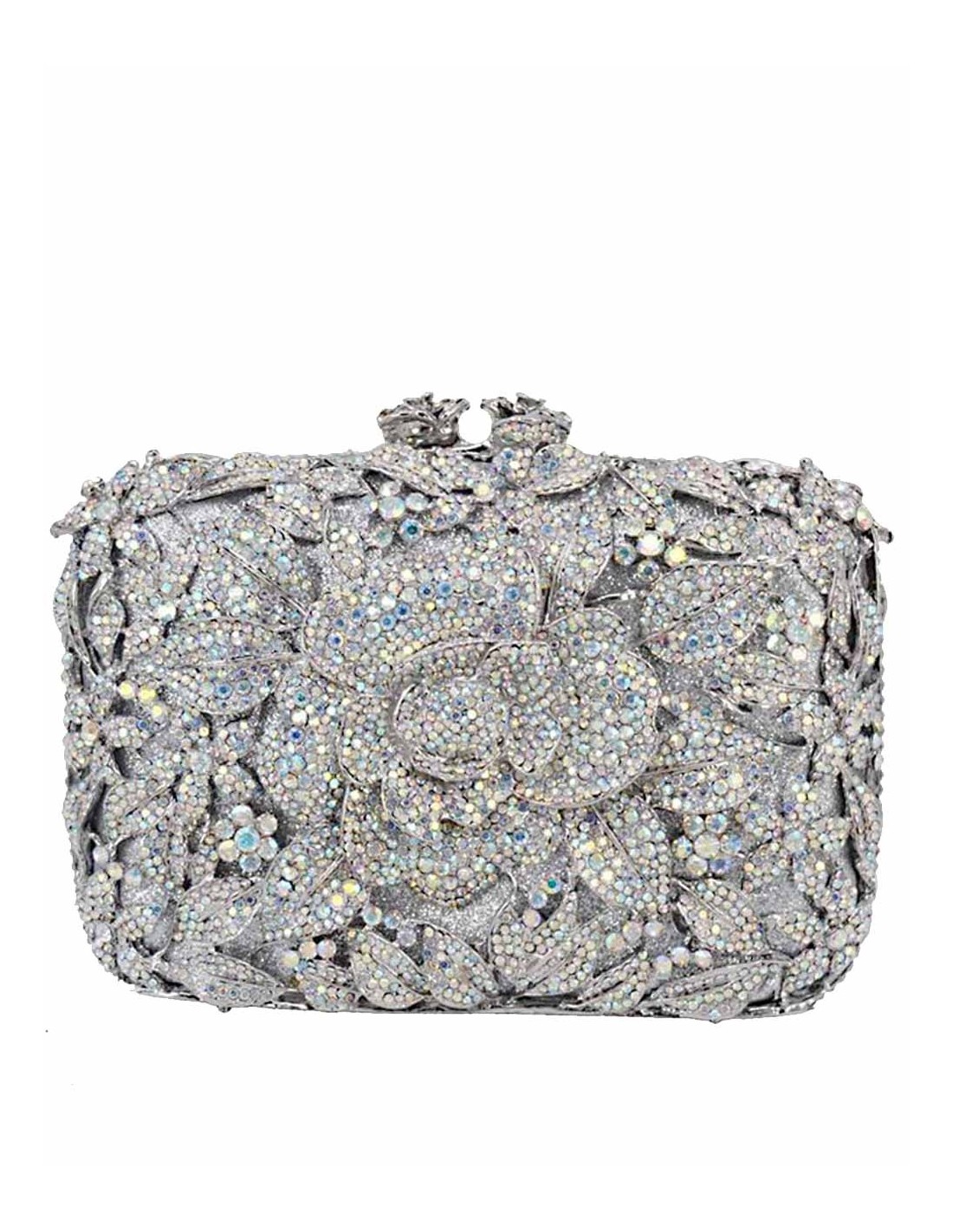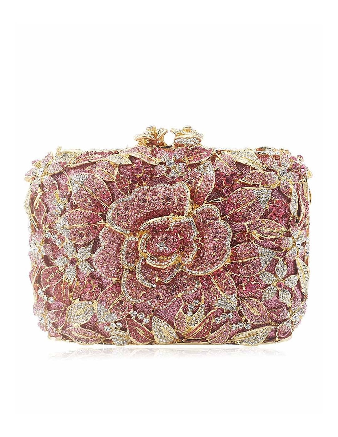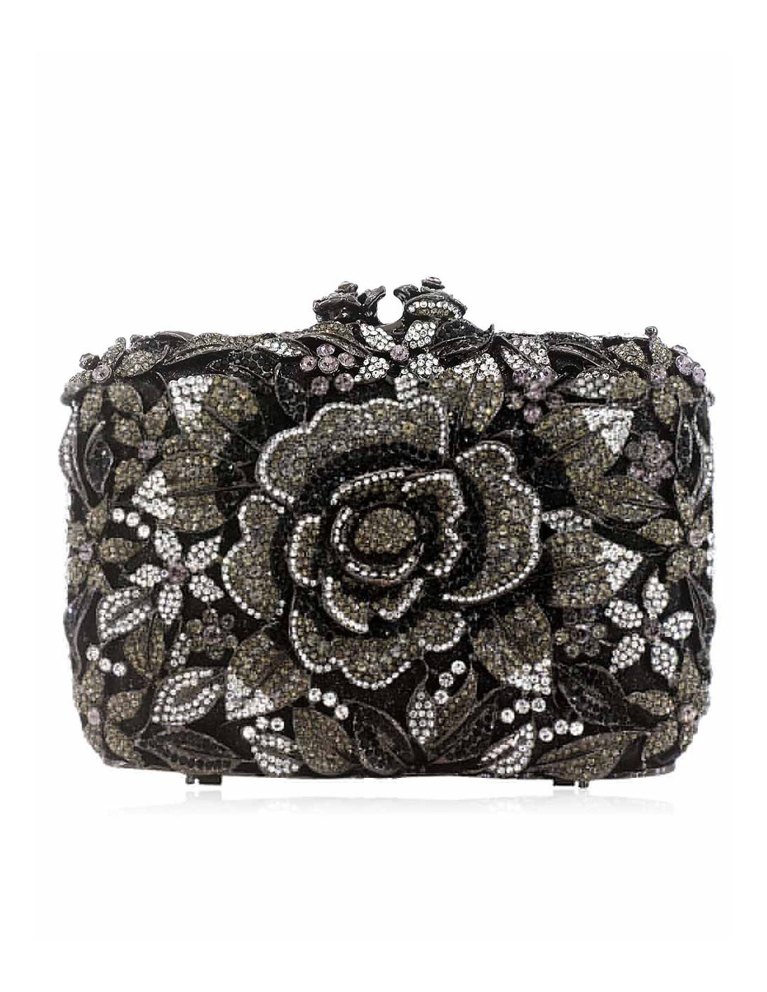 Sac de fête en métalfabriqué à la main et décoré d'une superbe rose centrale et de cristaux Swarovski.