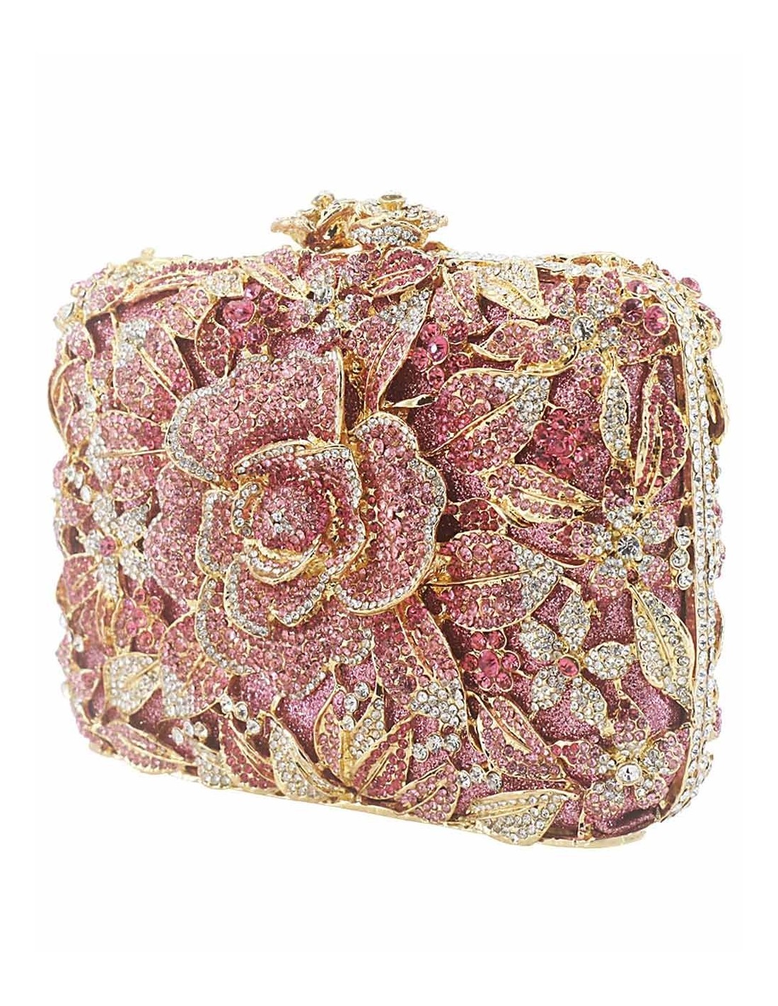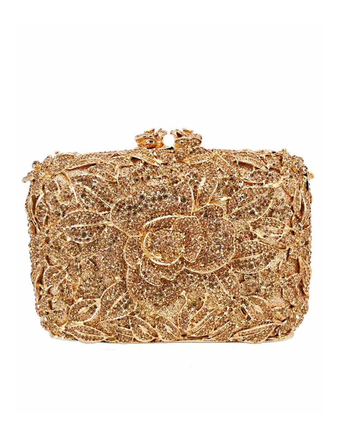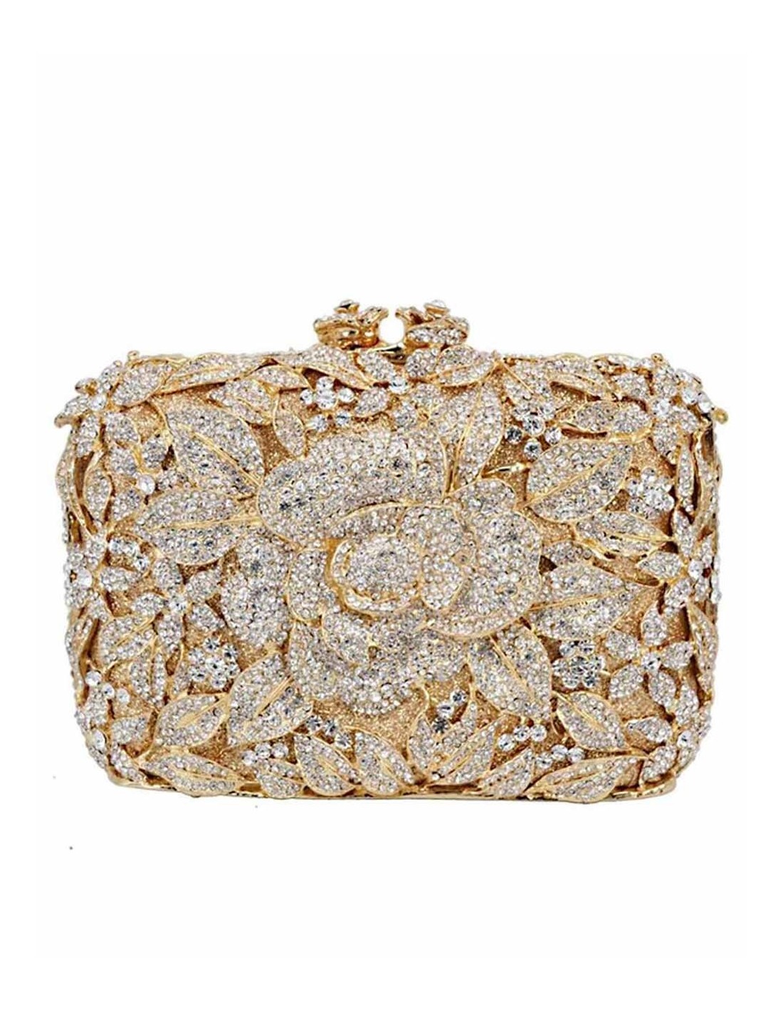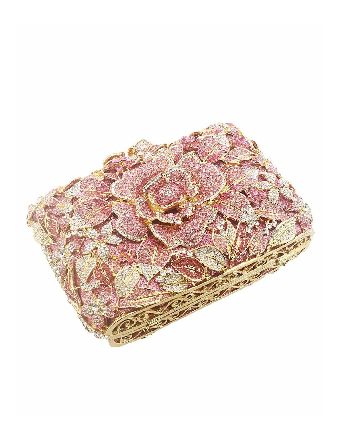 Sac de fête en métalfabriqué à la main et décoré d'une superbe rose centrale et de cristaux Swarovski.