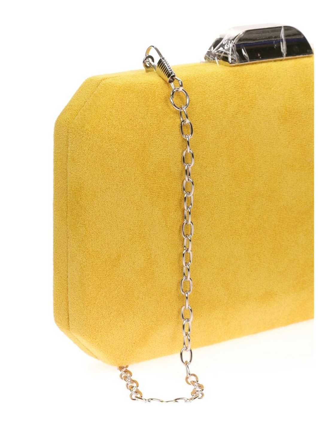Sac de fête en daim disponible en plusieurs couleurs : moutarde, bleu, rose, klein, ivoire, bleu marine, rouge, bougainvillée, violet et noir. Ce sac de fête est doté de poignées dorées que vous pouvez attacher ou enlever selon votre goût.