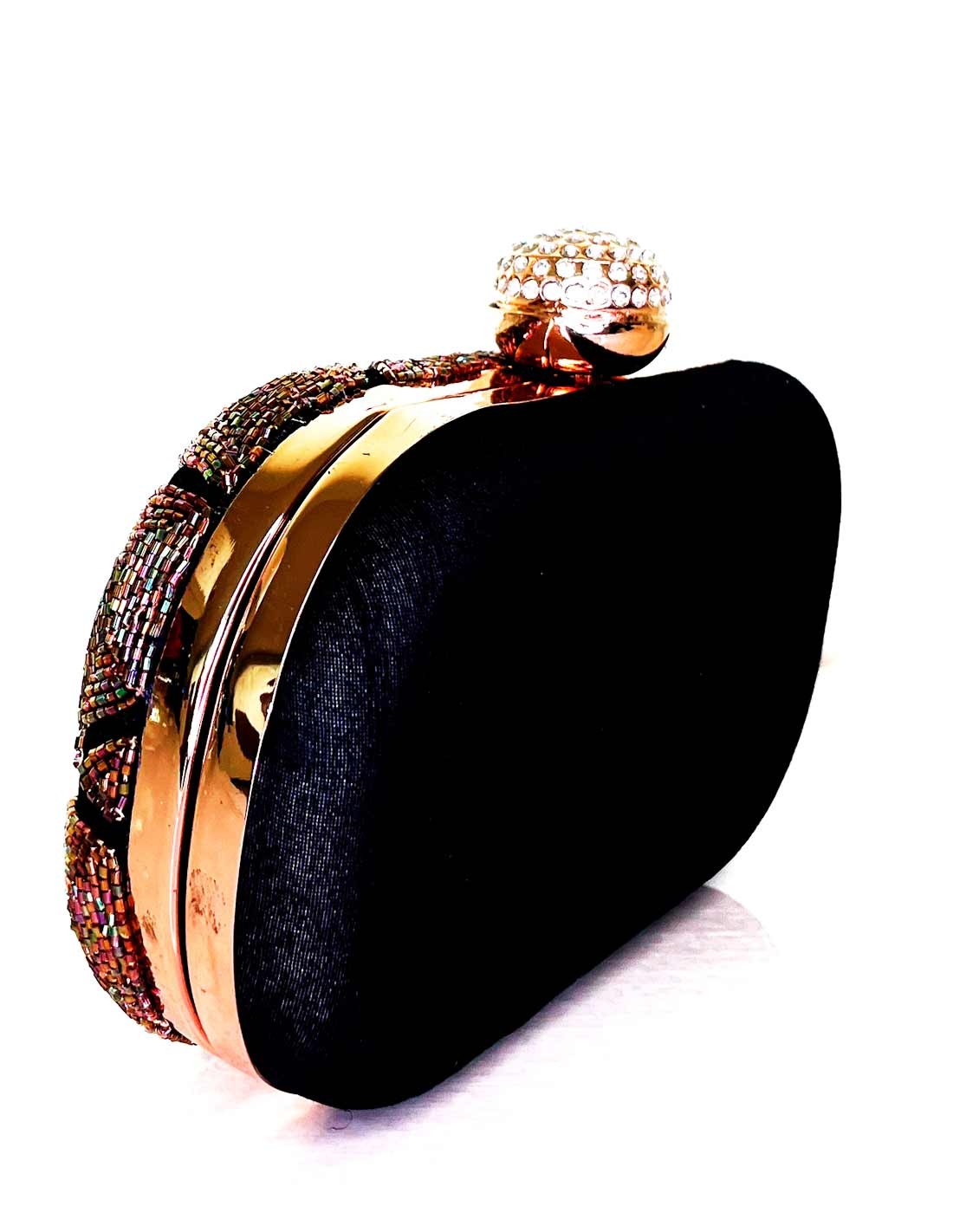 Sac de fête noir avec strass brodés à la main et fermeture en bijou