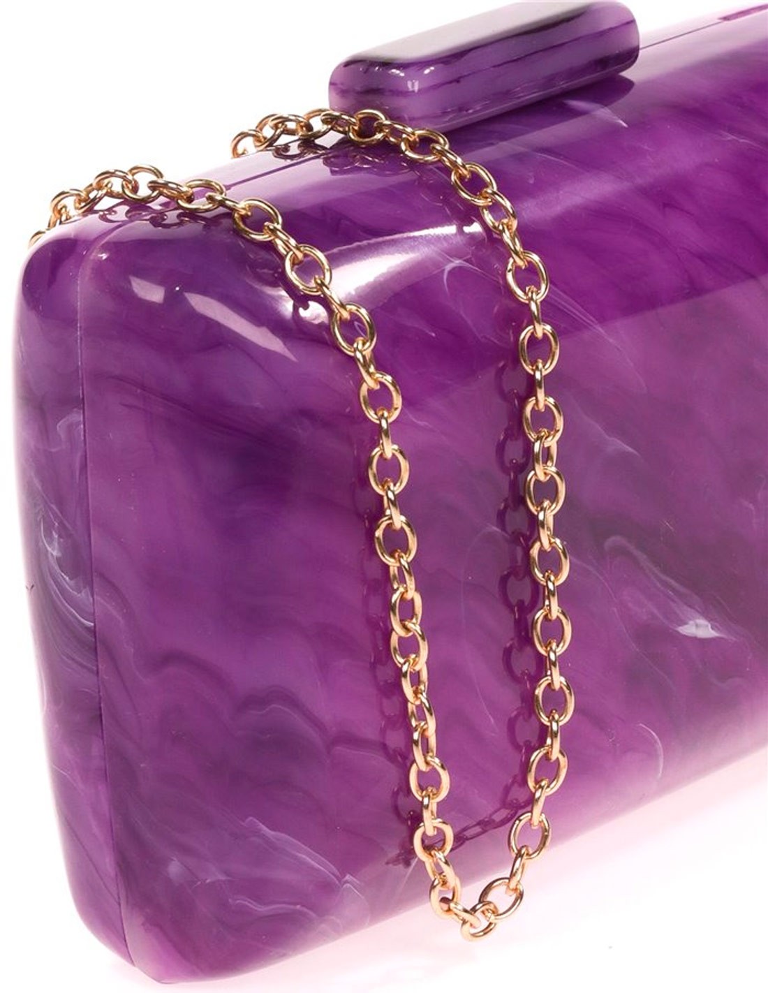 Ce sac de fête en nacre est disponible en quatre couleurs : fuchsia, bleu électrique, rose et violet. Il a de beaux bords arrondis qui ajoutent une touche d'élégance et sa finition est divine.