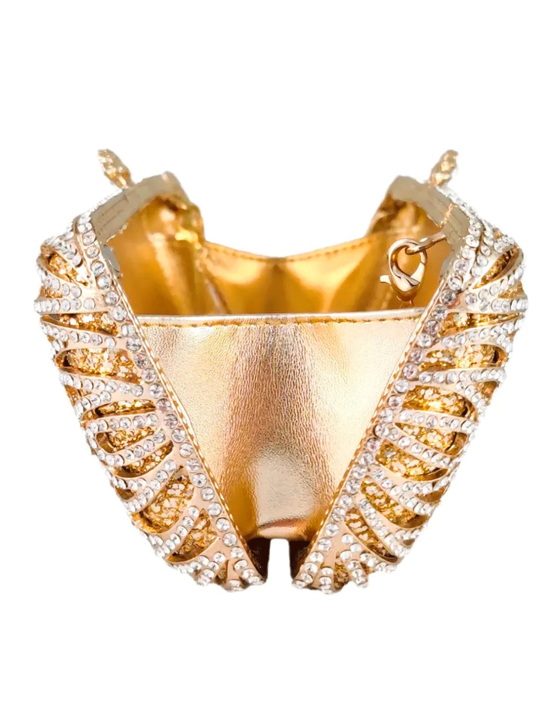 Sac à main bijou avec cristaux métalliques réaliséavec des cristaux de tonalité naturelle sur un métal doré brillant et merveilleux