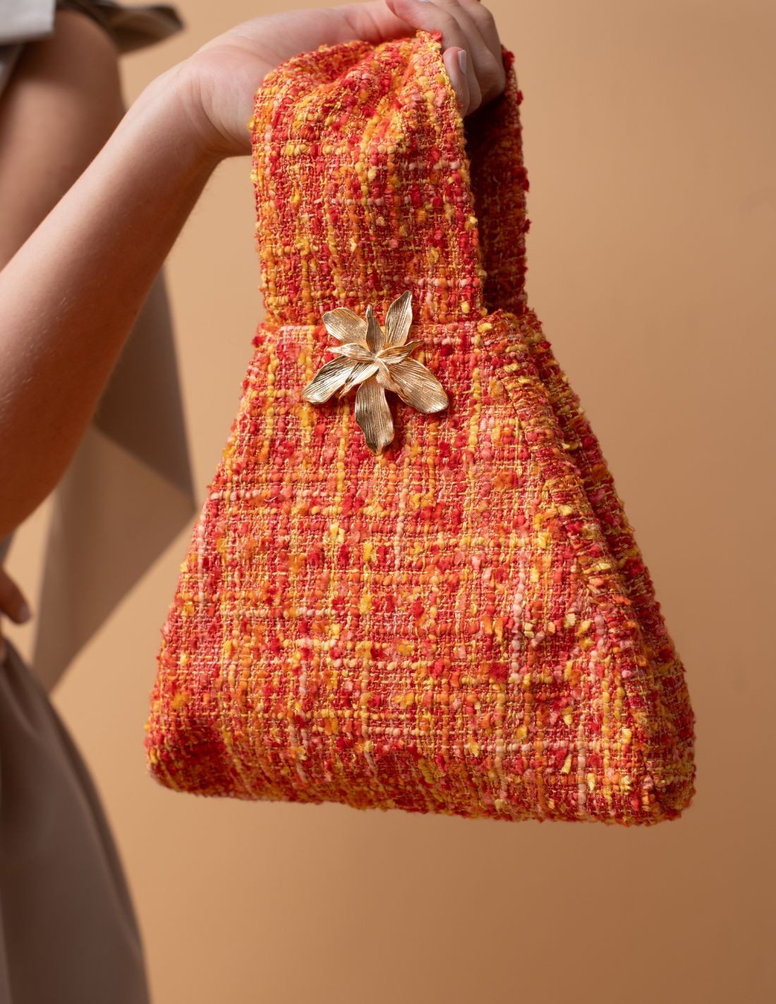 Bolso para invitada en tweed con aplique