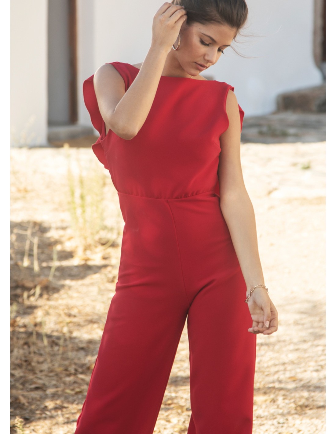 Cette superbe combinaison rouge est la définition même de l'élégance et de la sophistication. Son design minimaliste est rehaussé d'un détail unique et spécial : un magnifique volant dans le dos, qui ajoute du mouvement, du volume et une touche distinctive qui ne passera pas inaperçue.