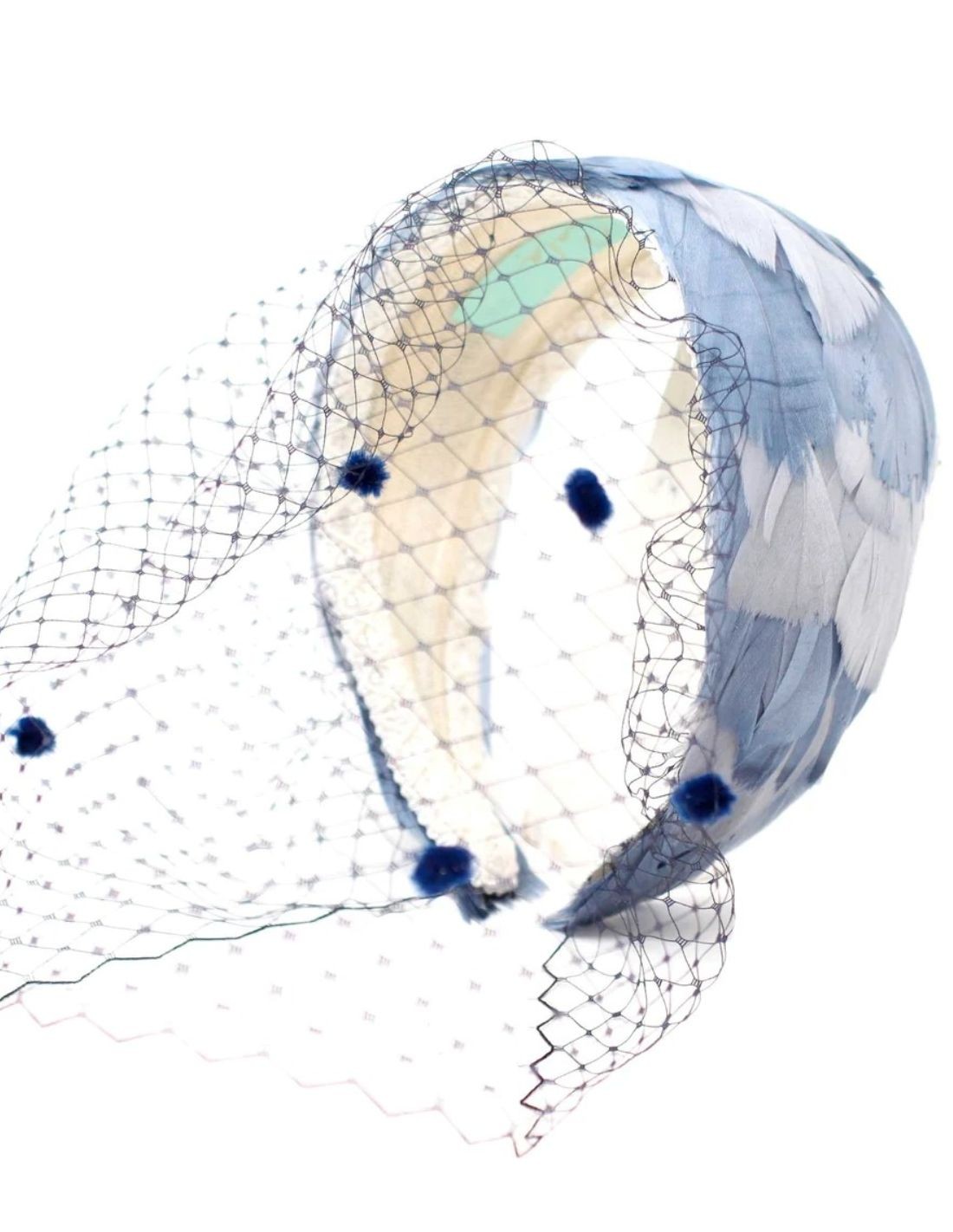 Si vous cherchez un accessoire pour compléter votre look d'invitée, ce magnifique bandeau de plumes dans les tons bleu foncé et bleu poudre sera parfait à porter lors de votre prochain événement.