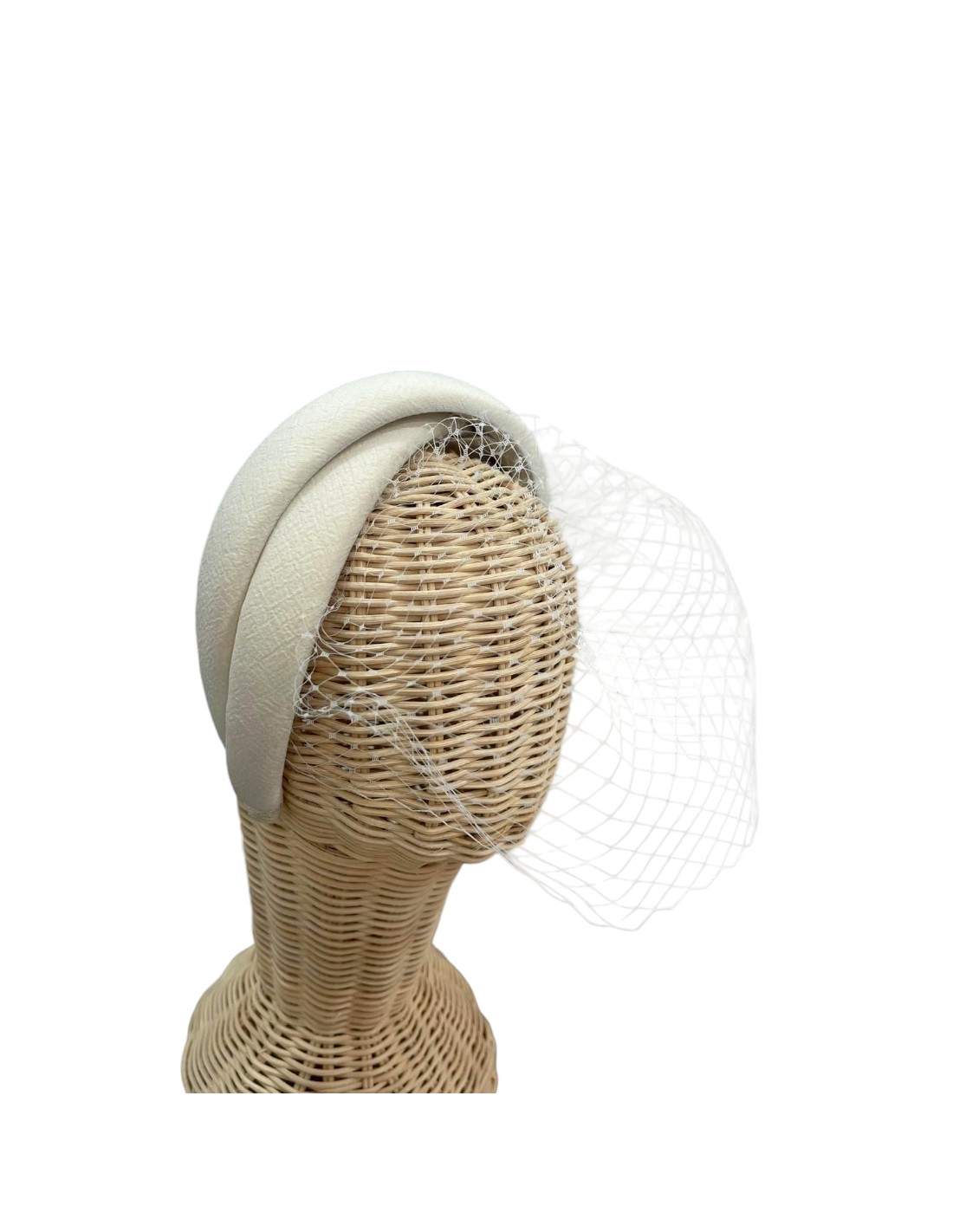 Ce double bandeau brut pour invités, associé à un subtil voile en treillis de la même couleur, se distingue par son élégance. Fabriqué à la main avec un dévouement artisanal, il est idéal pour les événements, les mariages ou les tenues sophistiquées.