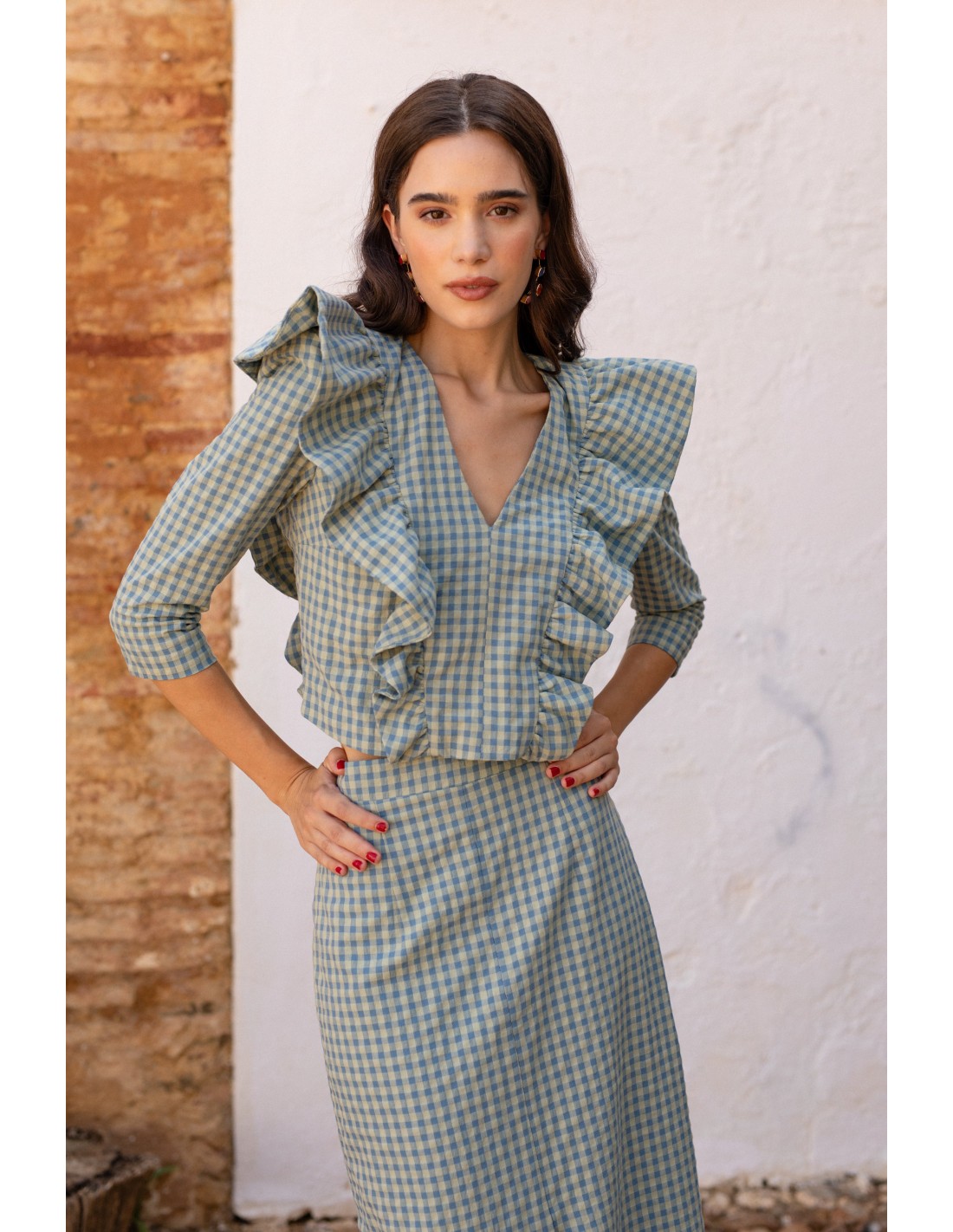 L'ensemble vichy guest vert, en tissu vichy, est le choix parfait pour celles qui recherchent un look romantique et sophistiqué.