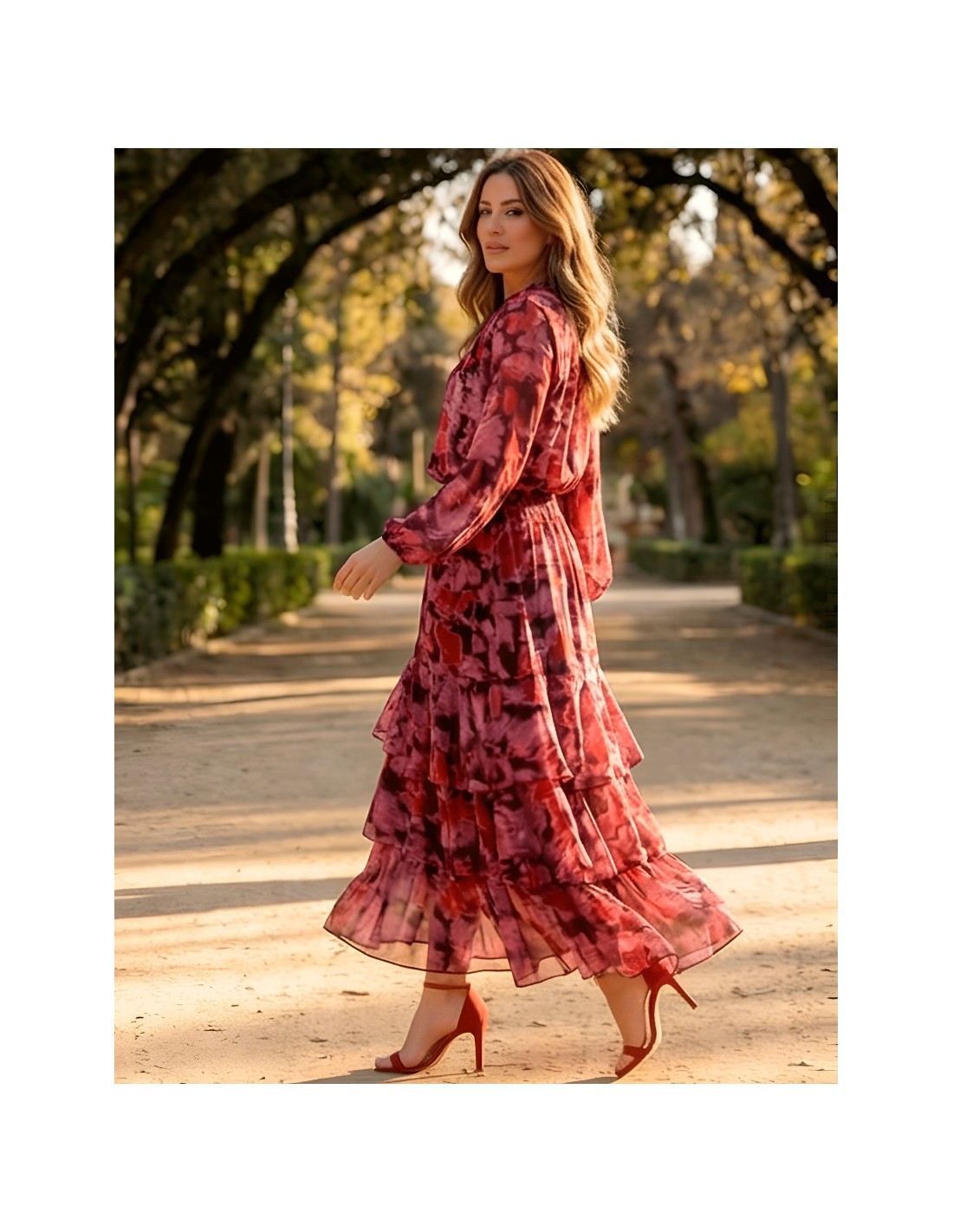 Le contraste entre le rouge et le violet crée un imprimé profond et harmonieux, particulièrement flatteur et parfait pour les mariages d'automne, les célébrations nocturnes ou les événements où l'on recherche un look de caractère.