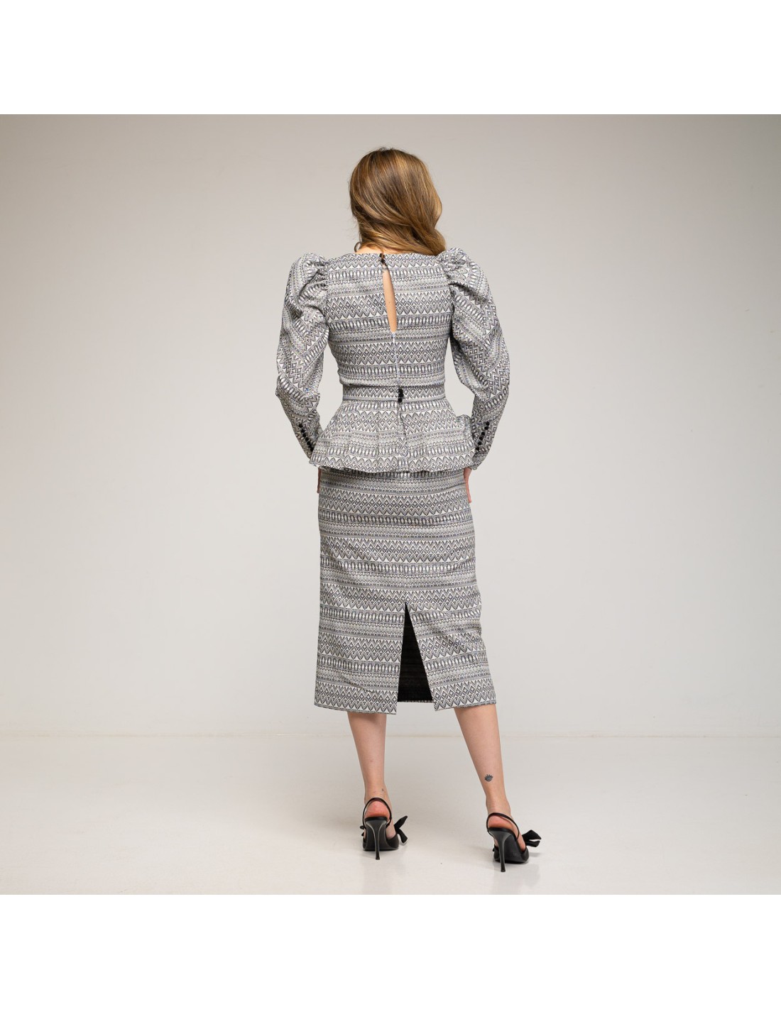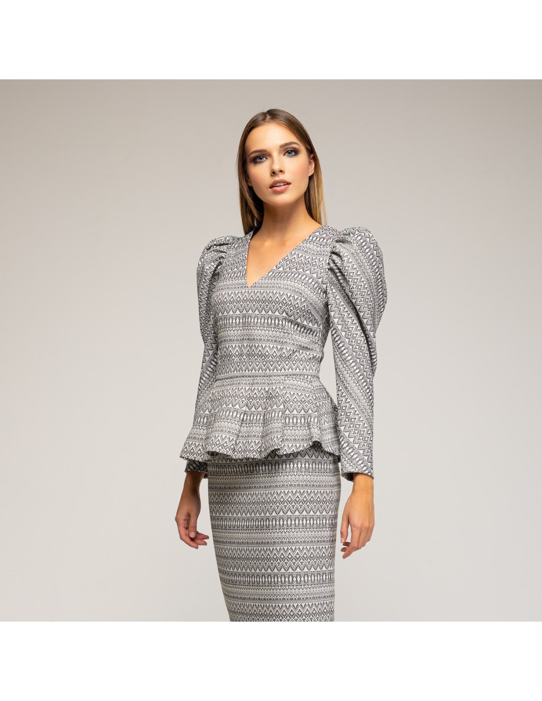 Ce haut d'invité deviendra la star de votre garde-robe. Il est composé de manches bouffantes détachables en noir et blanc. Il présente une encolure en V et des petits boutons sur les poignets. Si vous l'associez à la jupe dans le même tissu, vous obtiendrez une tenue très polyvalente et très élégante pour toutes sortes d'occasions, formelles ou informelles. Vous pourrez faire plusieurs combinaisons et la porter de différentes manières en fonction de l'événement. Vous serez une invitée parfaite !