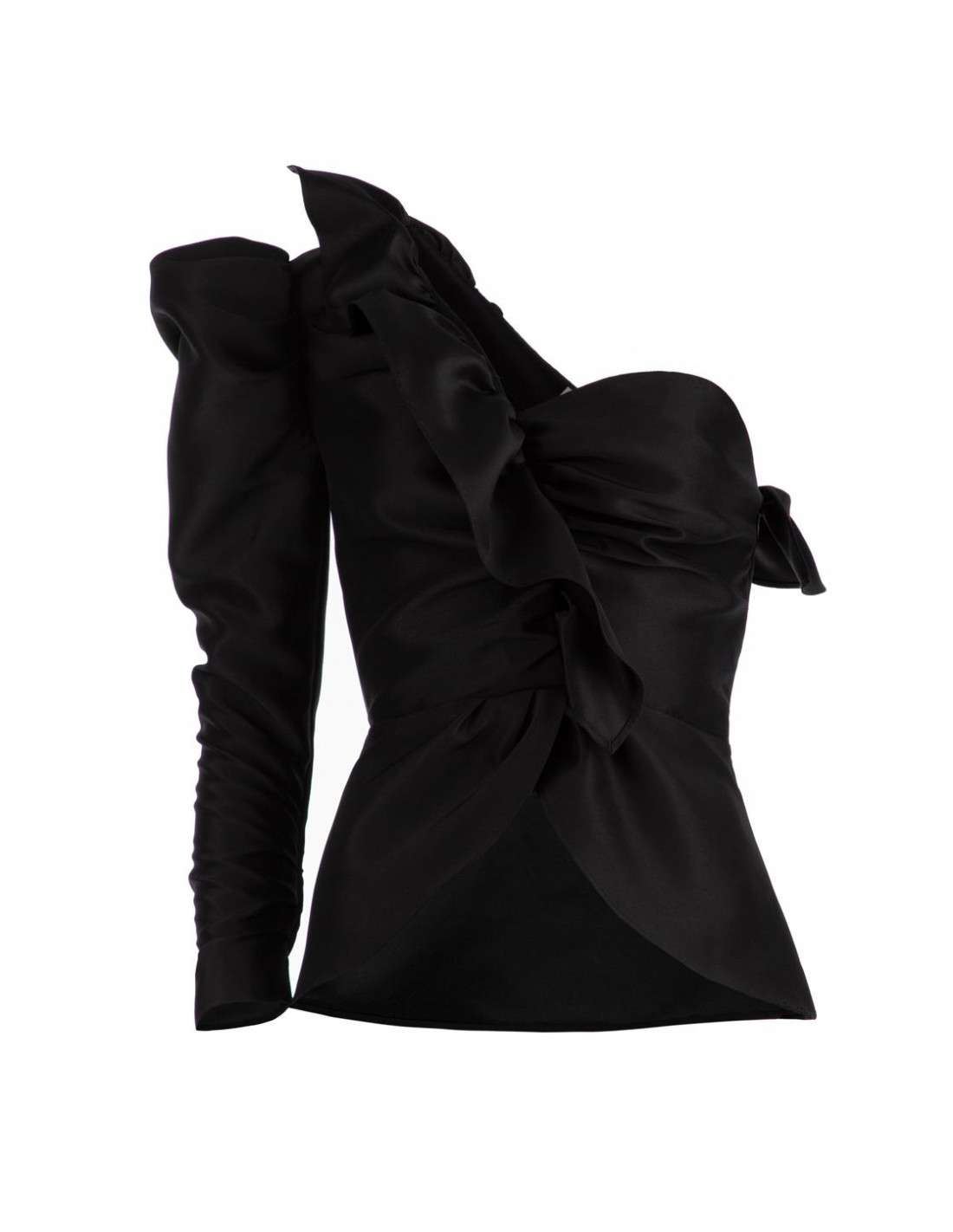 Plein de détails spéciaux, ce Top est confectionné dans un tissu structuré qui présente une manche bouffante, un design asymétrique, une garniture à volants sur le devant et une fermeture à glissière sur la couture latérale. Une superbe combinaison pour une invitée parfaite.