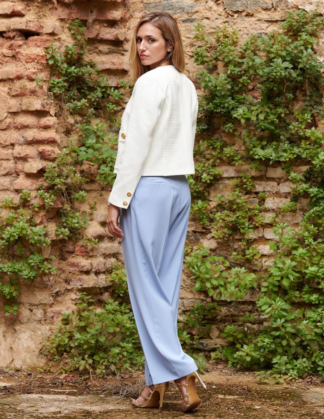 Veste de soirée courte en tweed avec boutons dorés pour les invités et les occasions spéciales.