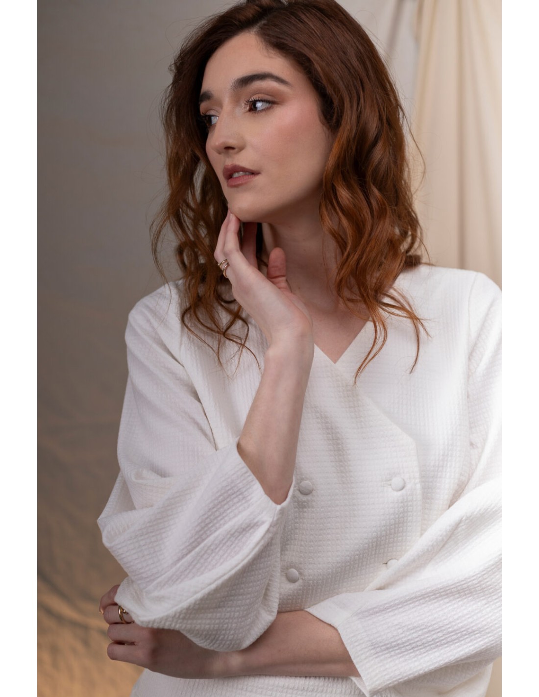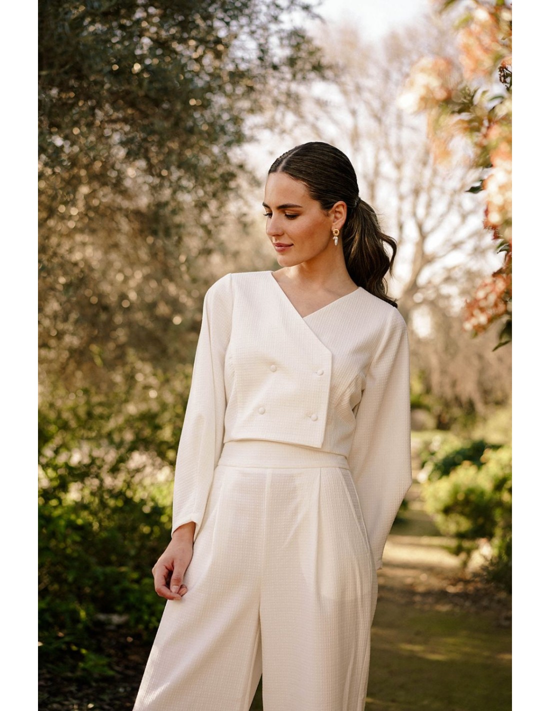Veste courte à double boutonnage avec boutons et manches larges