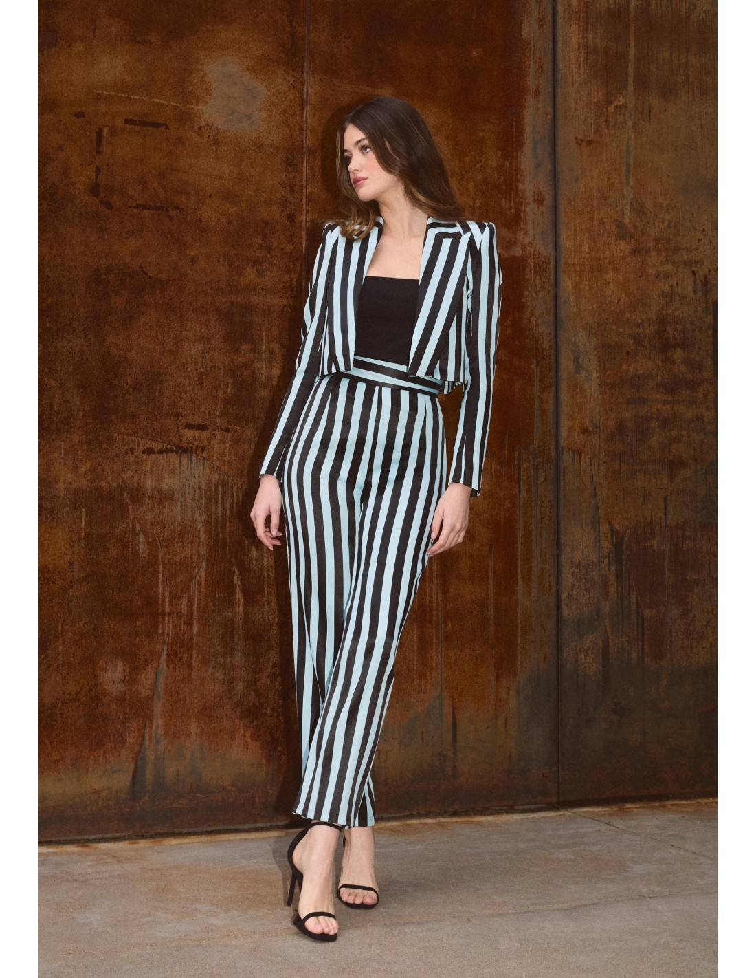 Veste de tailleur rayée noir et bleu clair pour les événements spéciaux